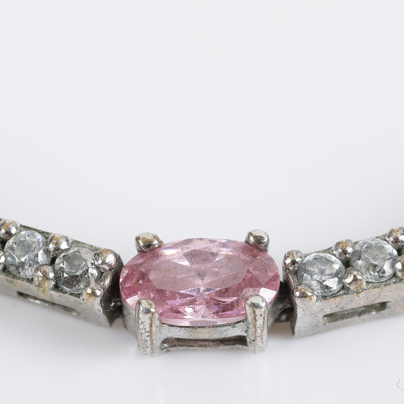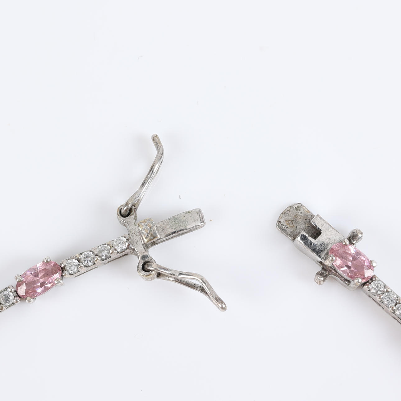 Armband aus Sterlingsilber mit ovalen rosafarbenen Steinen und weißen Steinen im Brillantschliff