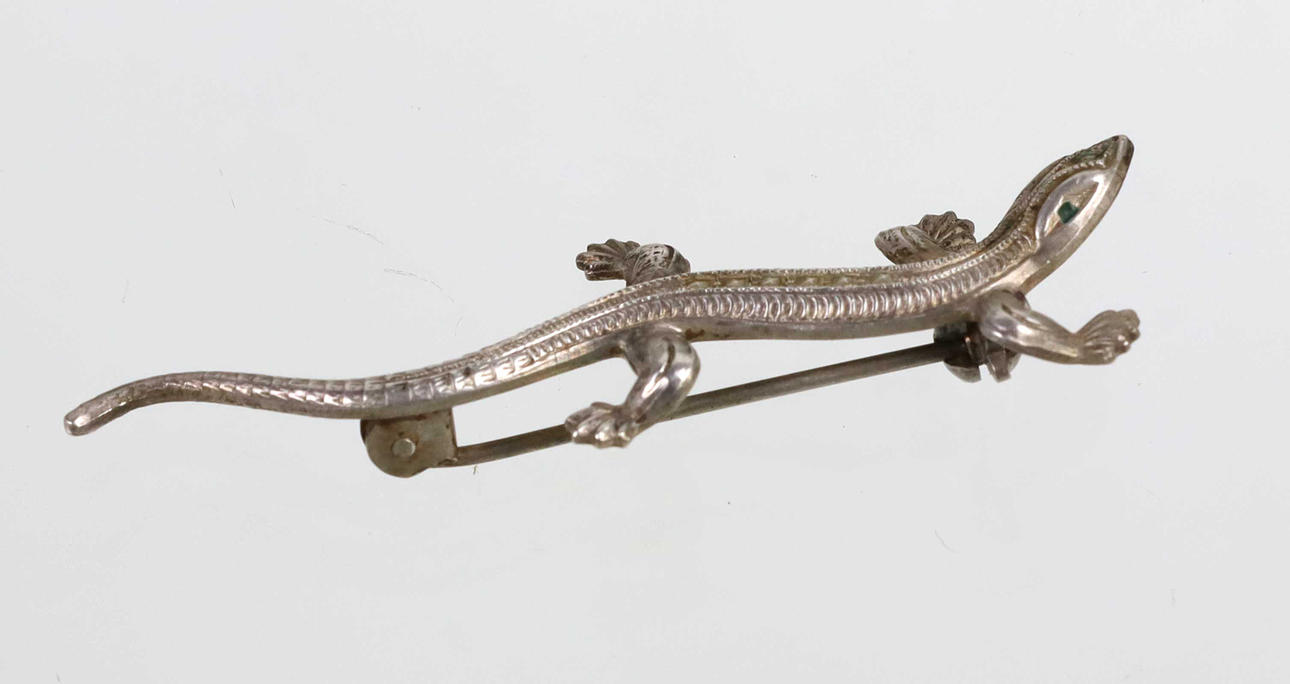 Brosche in Form eines Salamanders oder Eidechse in Silber 835 punziert sowie Hersteller Karl Hohmann - Pforzheim naturalistische Ausführung, rückseitig mit Nadel