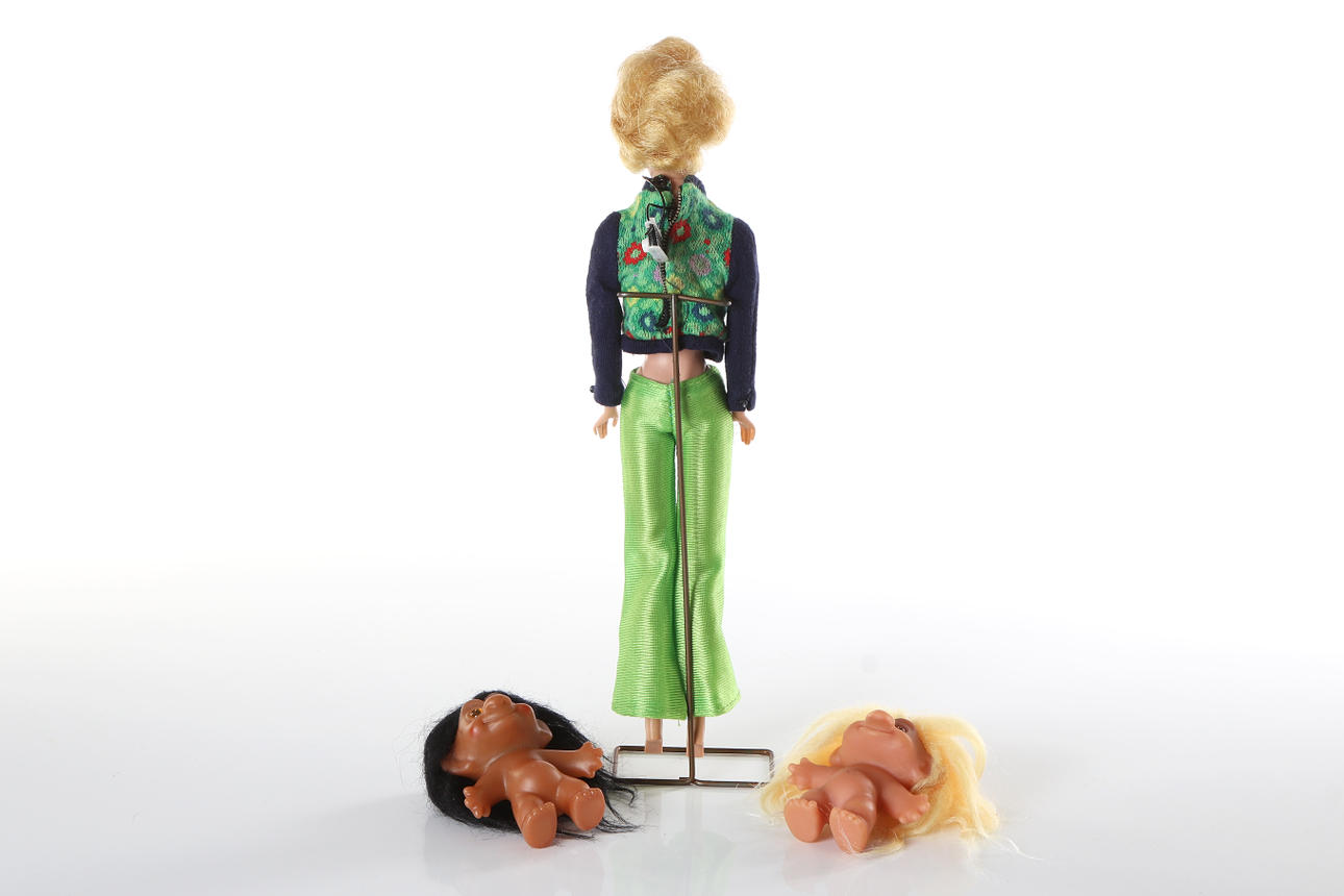 Barbie-Puppe, gekennzeichnet als Midge 1962 Barbie 1958 von Mattel Inc. Patentiert, sowie Trolle, gekennzeichnet mit Original DAM und Made in Denmark DAM. Kleidung nicht original.