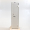 Mit Platz für drei Waffen. Vier Fächer im Schrank und drei in der Tür. Breite ca. 42 cm. Tiefe ca. 40 cm. Höhe ca. 150 cm.