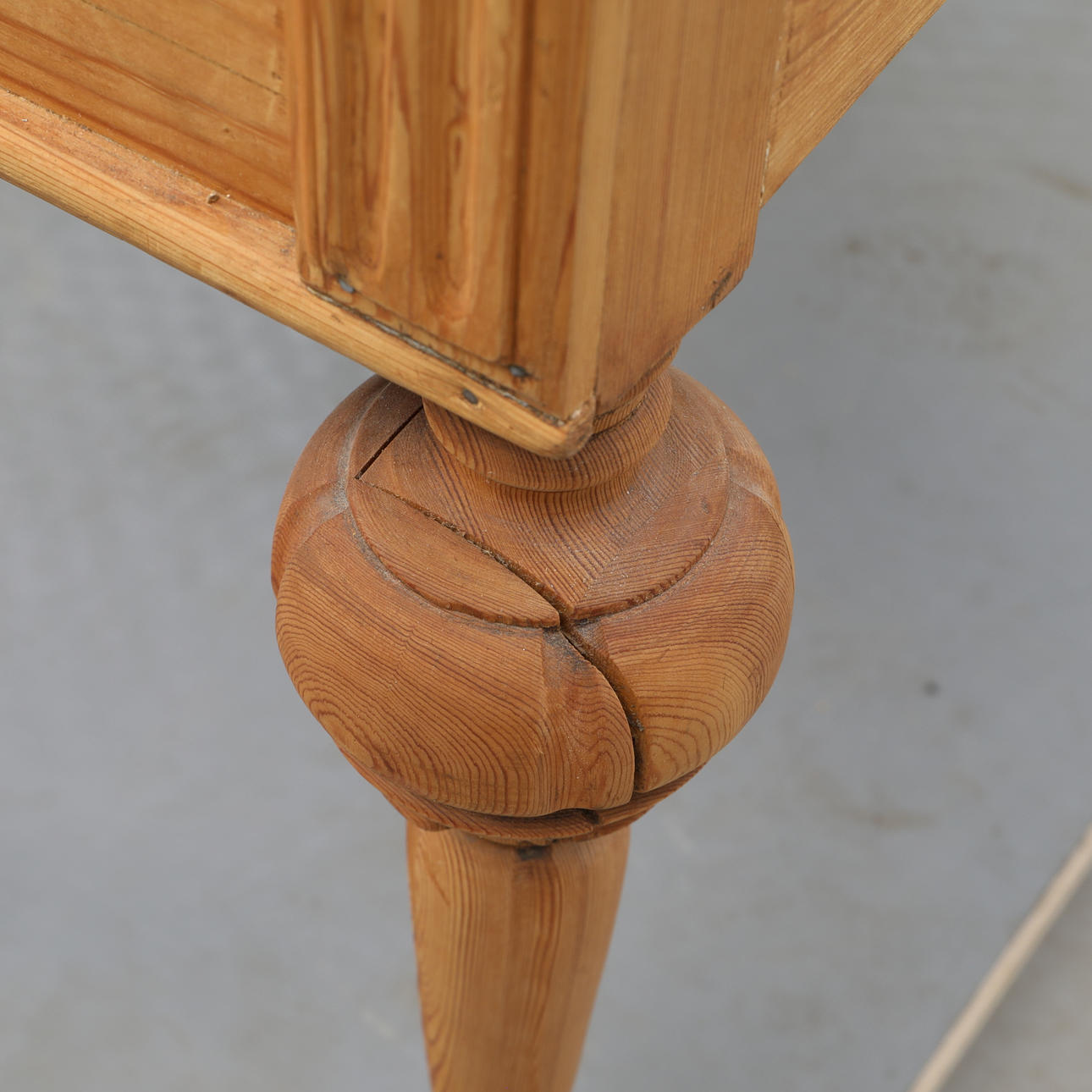 Verschleiß, Kratzer und Spuren, ein Bein geklebt.