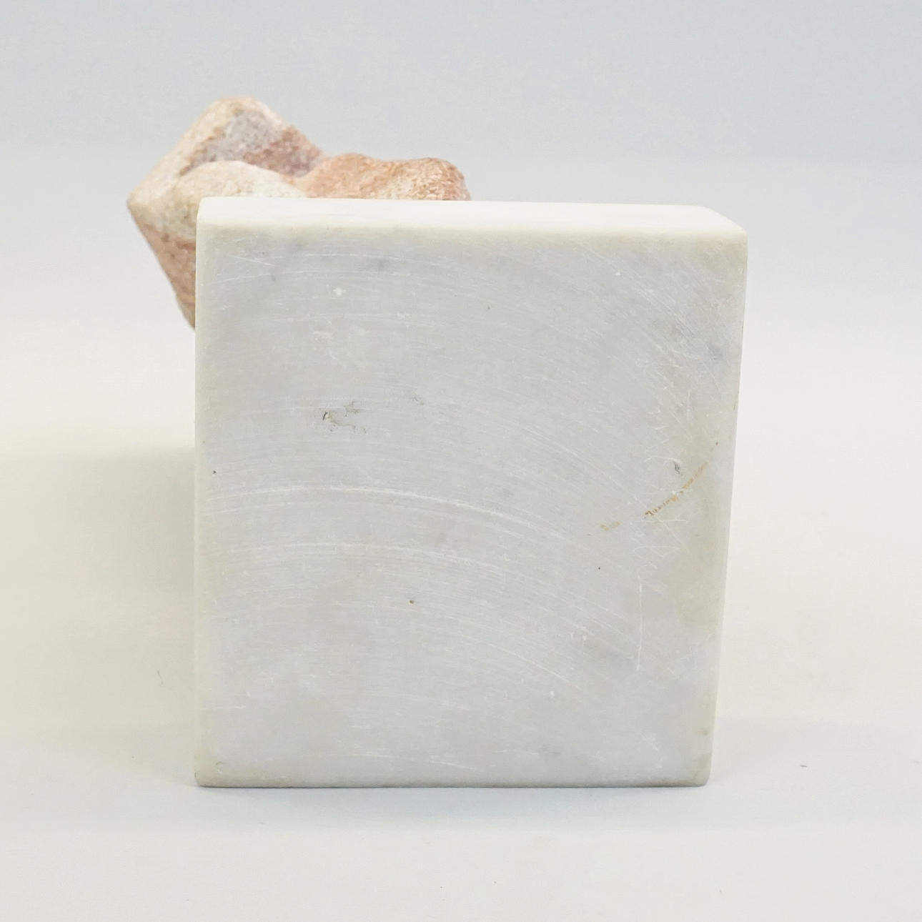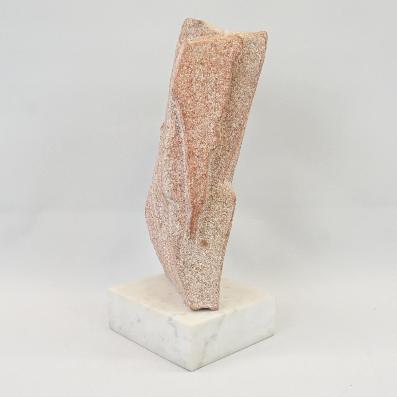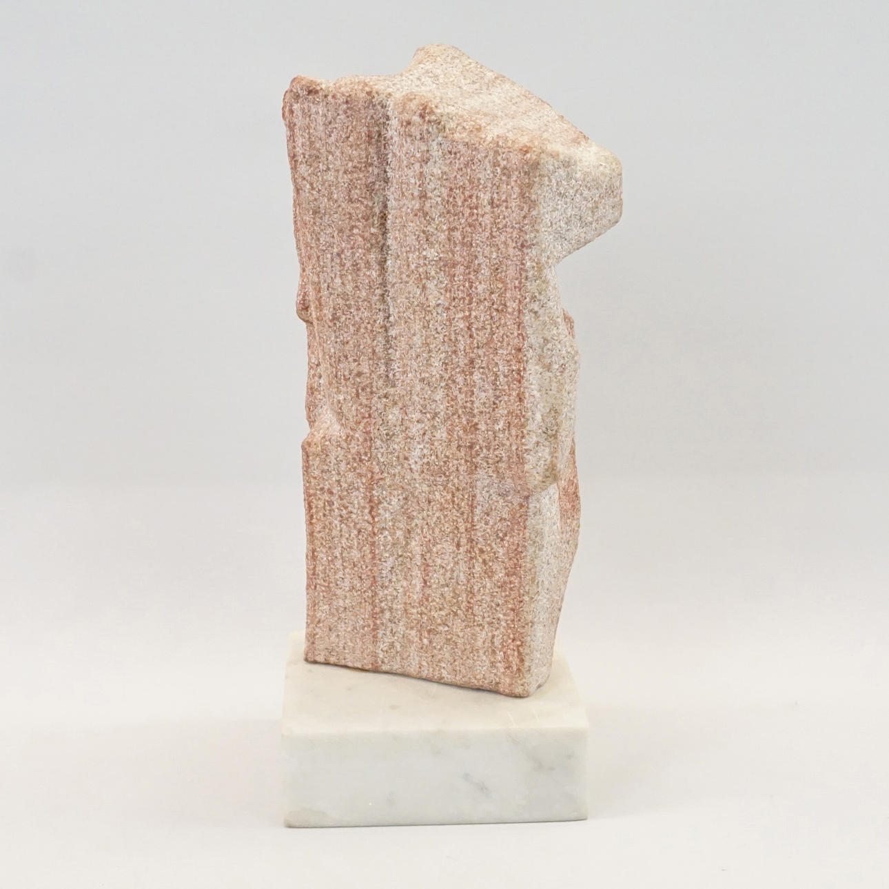 Steinskulptur auf Marmorsockel. Höhe ca. 31 cm. Sockel 12 x 11 cm.