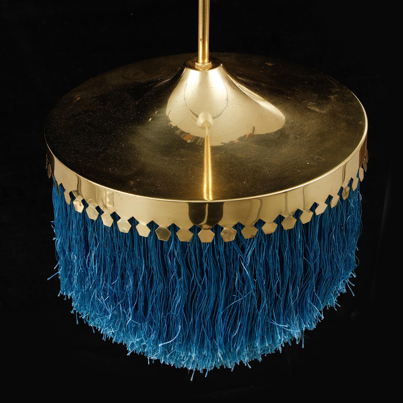 3207521. HANS AGNE JAKOBSSON. Deckenlampe, Messing und blaue Fransen.