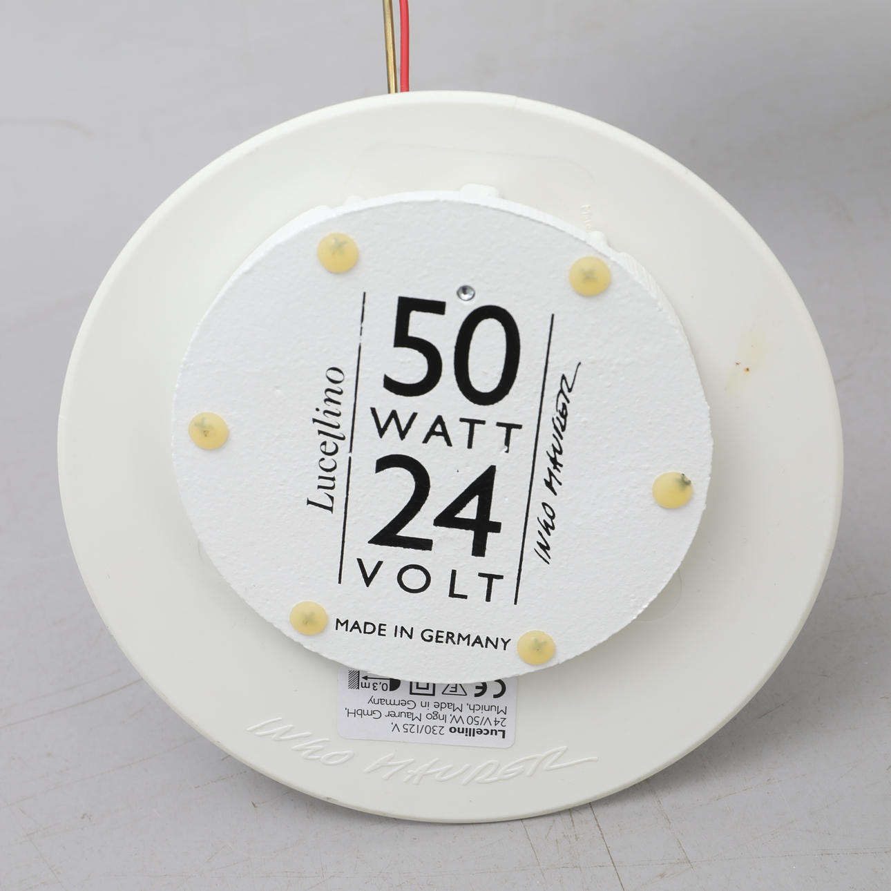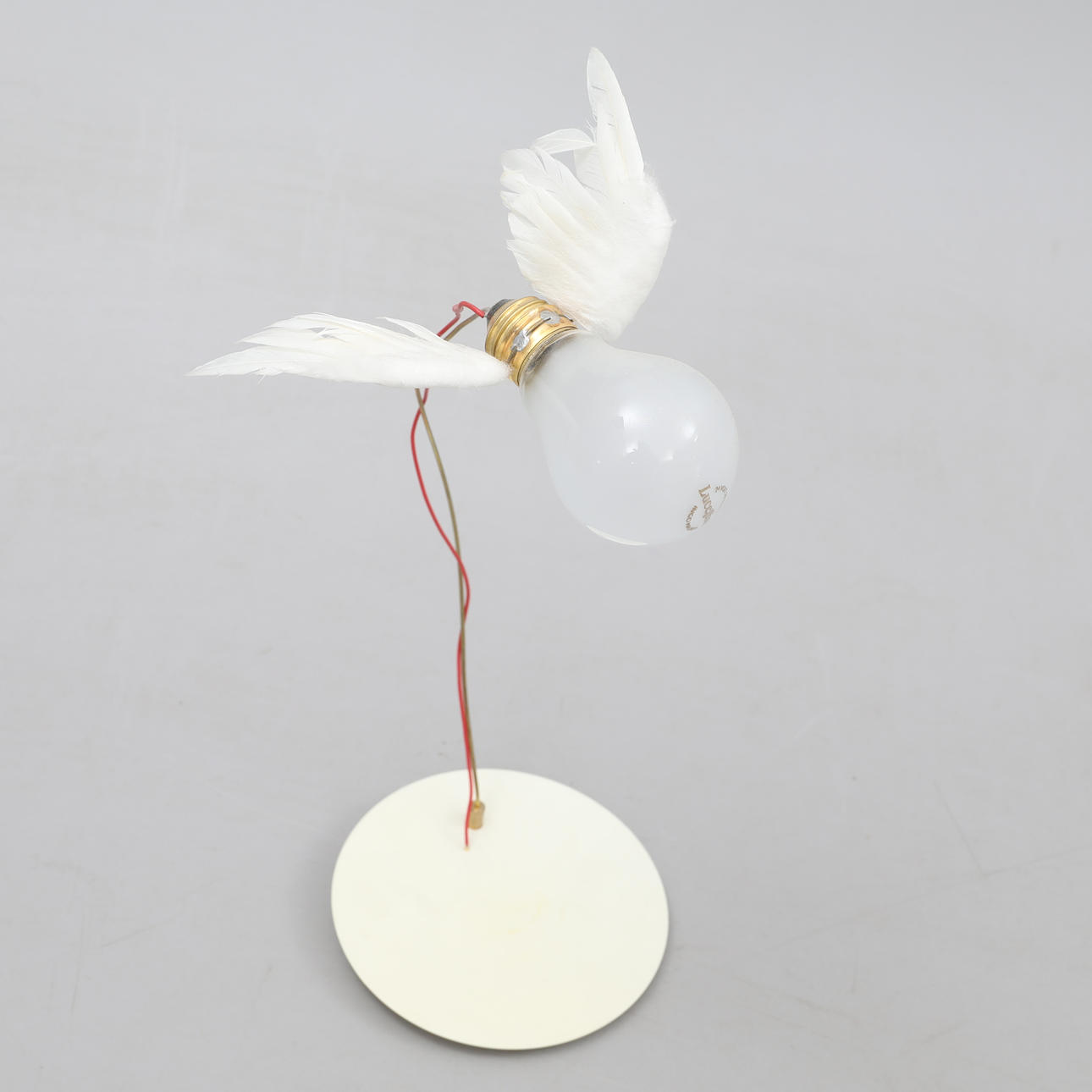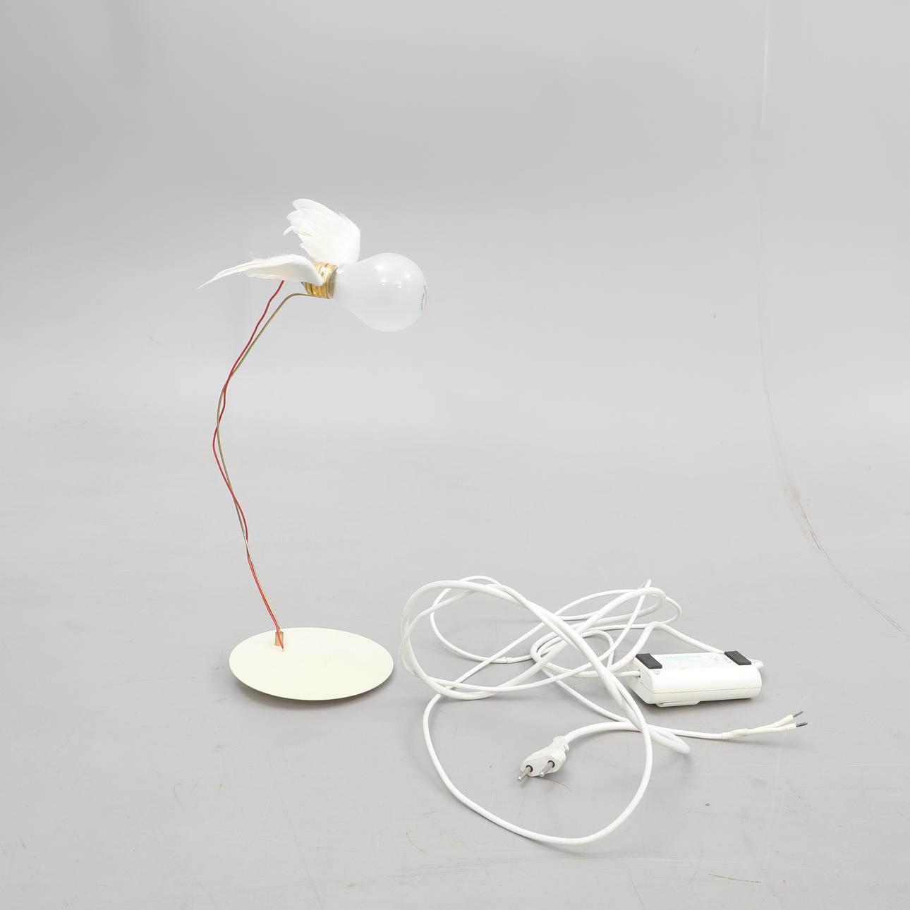 Design von Ingo Mauer aus dem Jahr 1992, Modell Luccelino. Gänsefederflügel. Die Lampe hat einen Dimmer.
