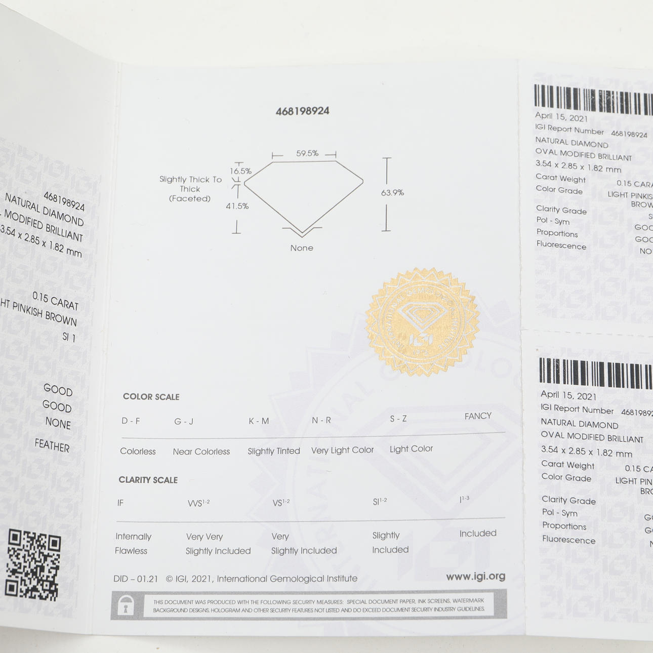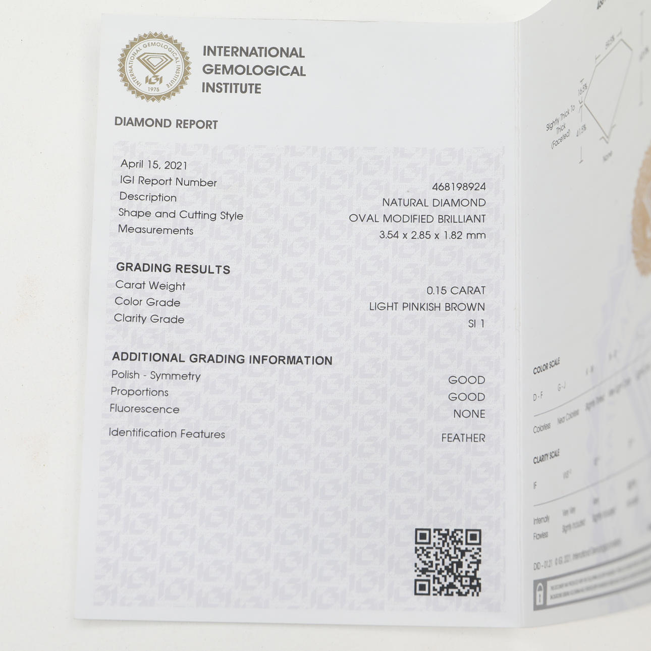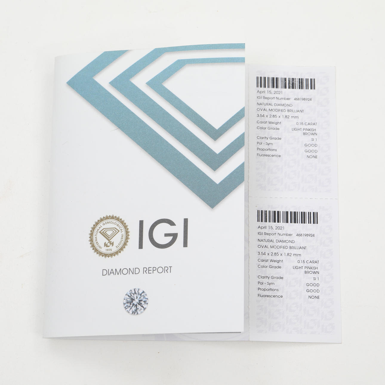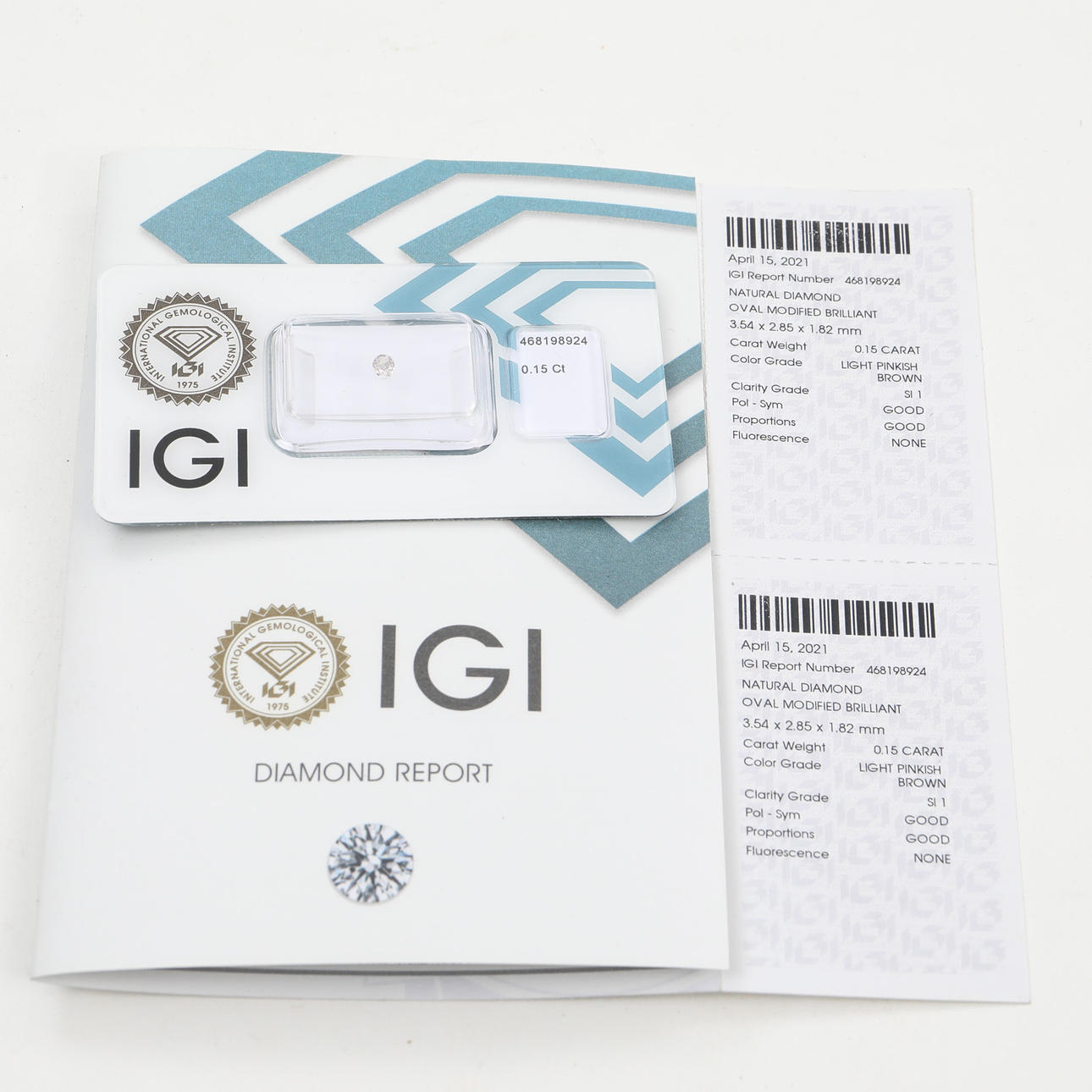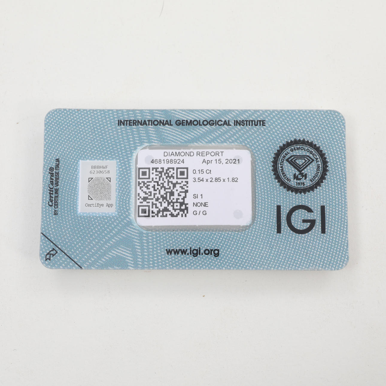 Diamant mit Zertifikat des IGI- International Gemological Institute.