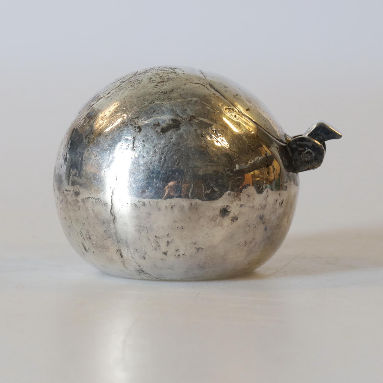 Kugelförmig. Eine herunterklappbare Luke mit Platz für eine Zigarette/Zigarre.
