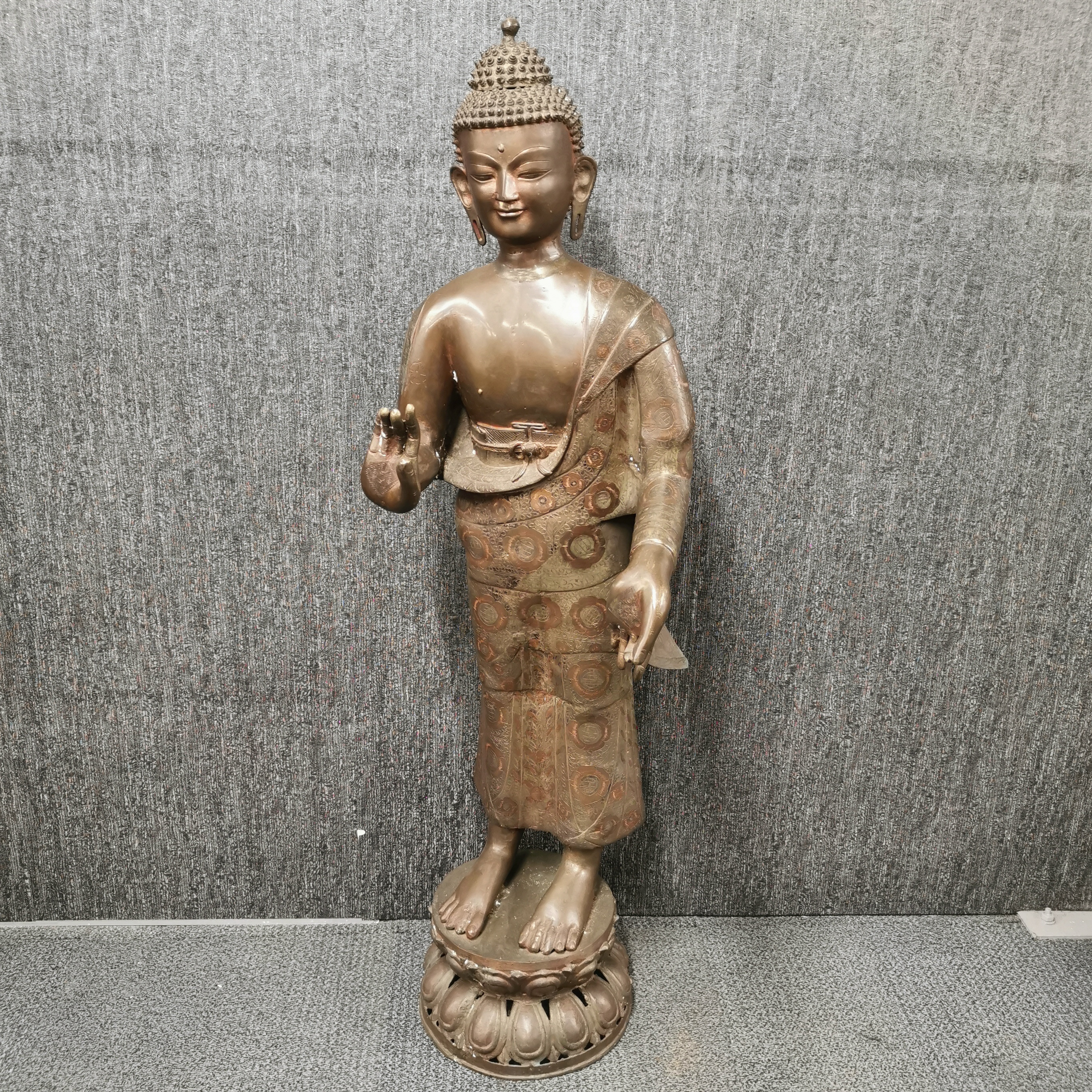 3210491. GROSSE STEHENDE BUDDHA-FIGUR.