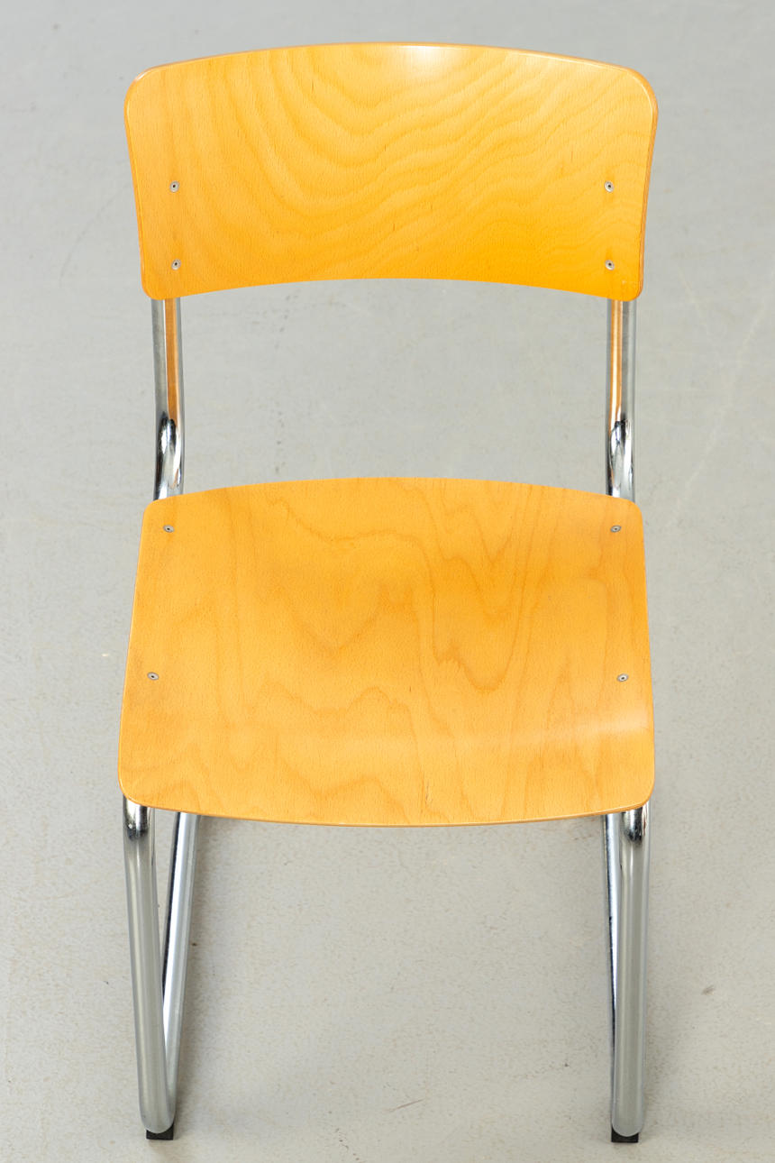 Stuhl / Freischwinger 'S43' von Mart Stam, Ausführung Thonet. Entwurf: 1929. Verchromtes Metallrohrgestell mit Sitzschale und Rücken in Buche.
