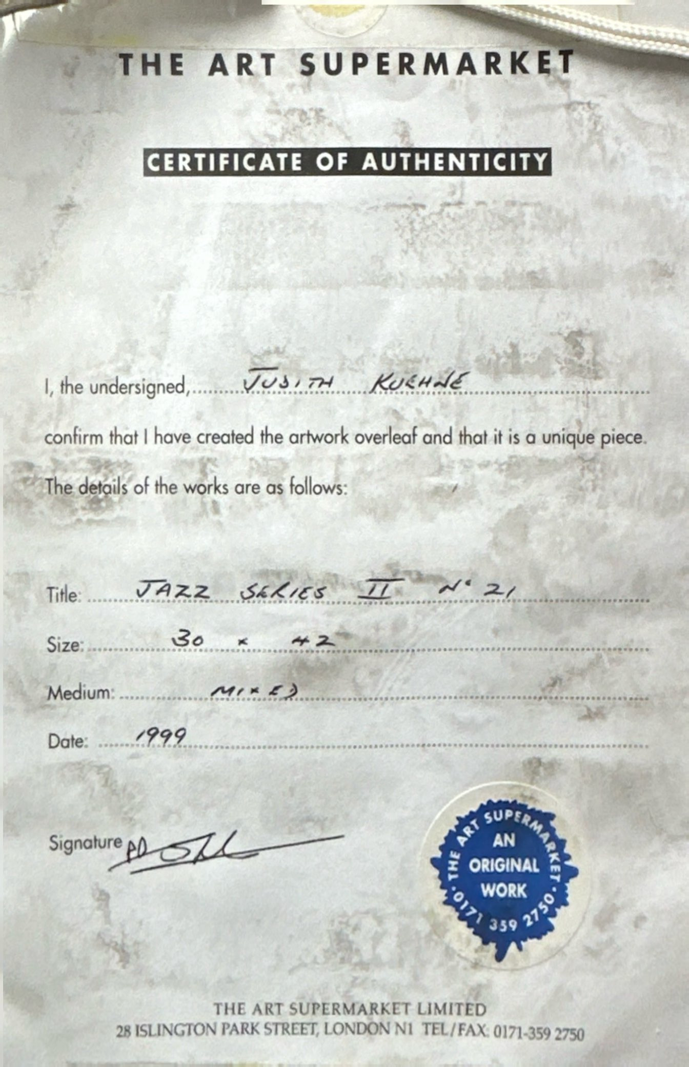 3218887. JUDITH KEUNE. 'JAZZ-SERIE II', GEMISCHTE MEDIEN.