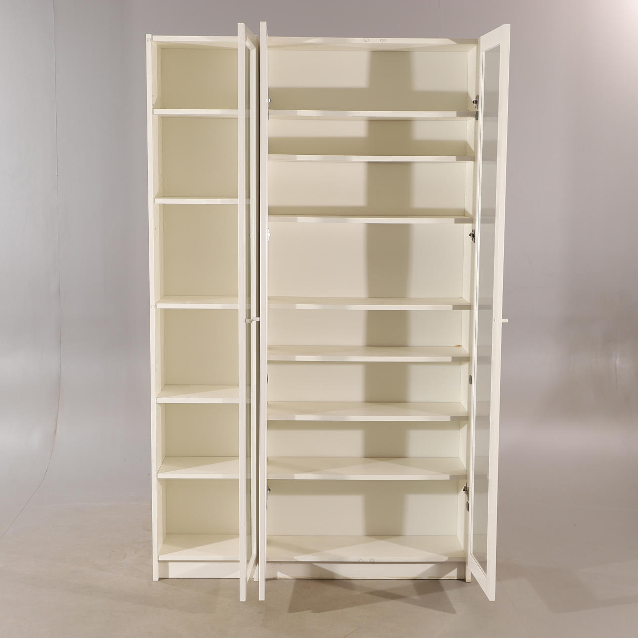 VITRINE UND BÜCHERREGAL, „Billy“, weiß lackiert, IKEA.