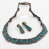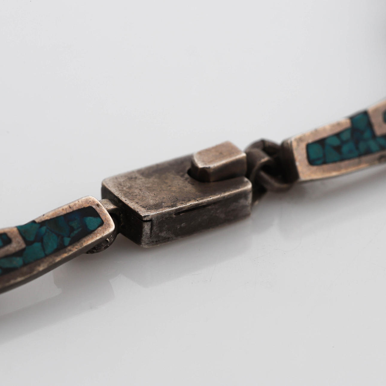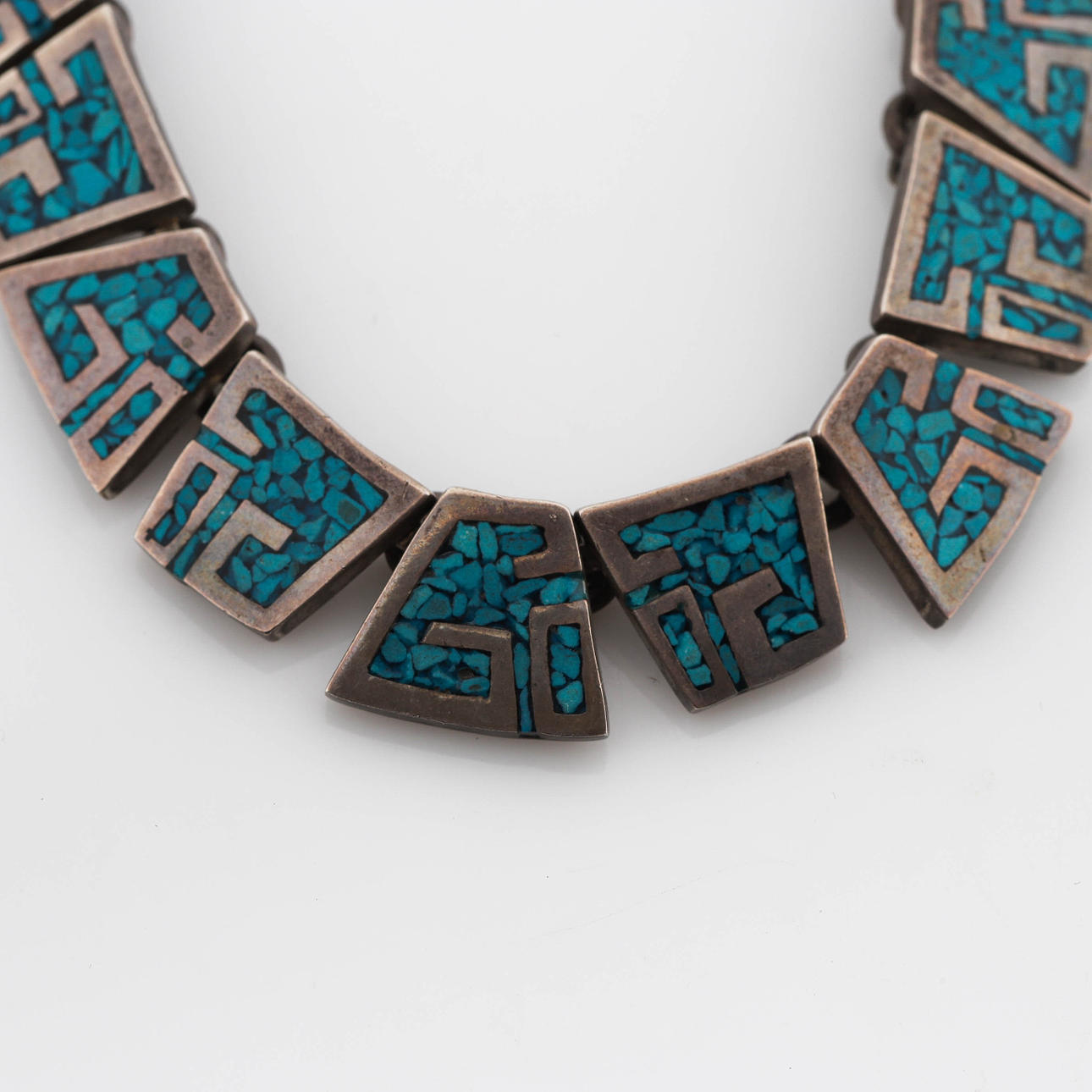 Halskette, halbstarr, Platten mit türkisfarbener Intarsie, Länge ca. 39 cm.