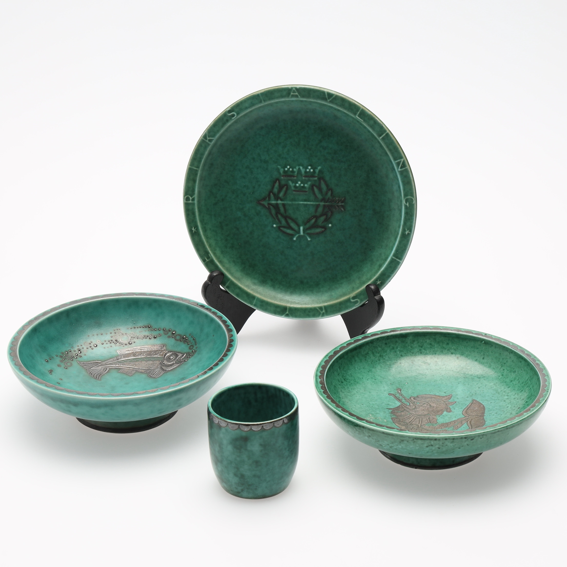 3220974. WILHELM KÅGE. Steinzeug, „Argenta“, 4 Stück, Gustavsberg.