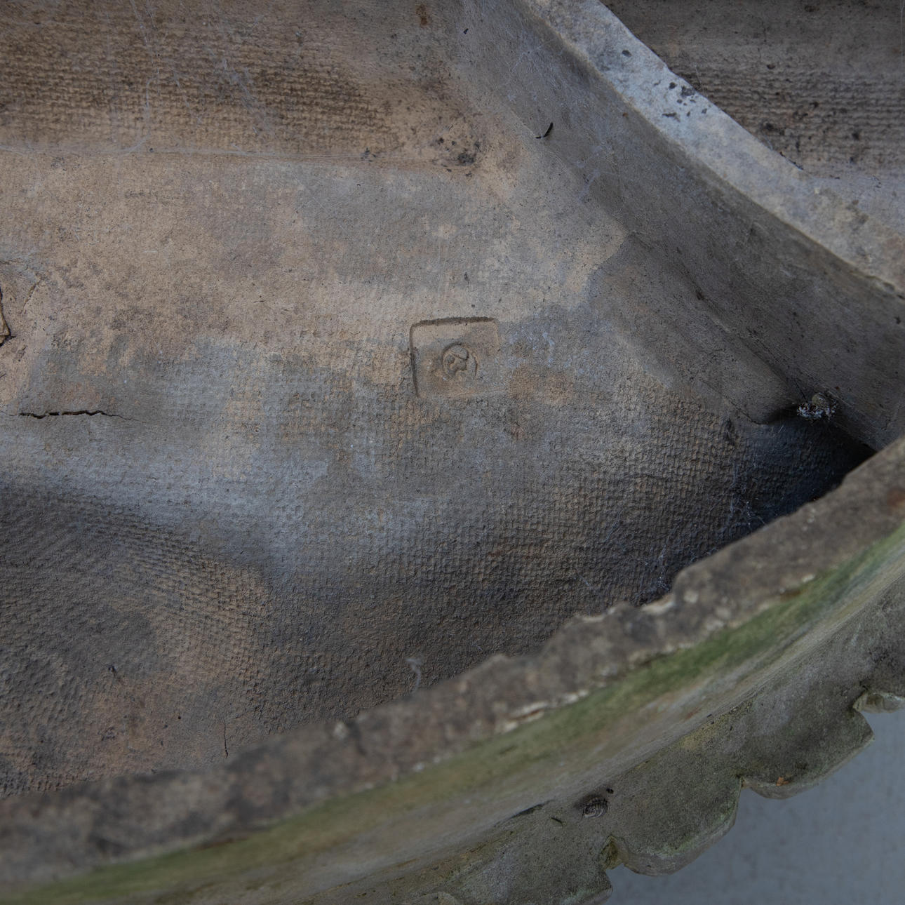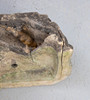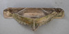 Sandstein. Über Zahnfries der Giebel im Segmentbogen. Mittig hochgeschnittenes Zierelement in Volutenform mit Muschelbekrönung. HxBxT: ca. 30 x 79 x 16 cm.
