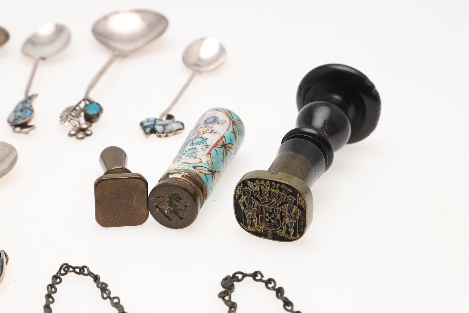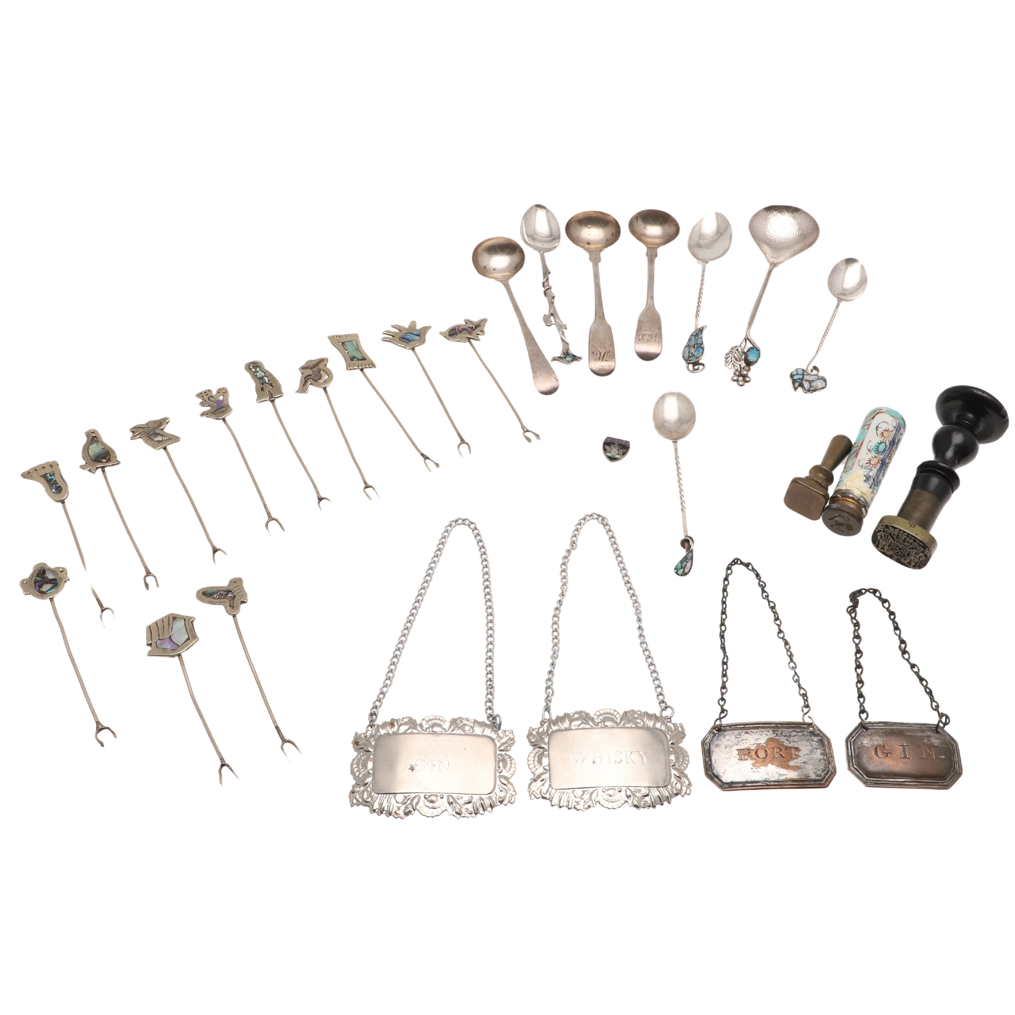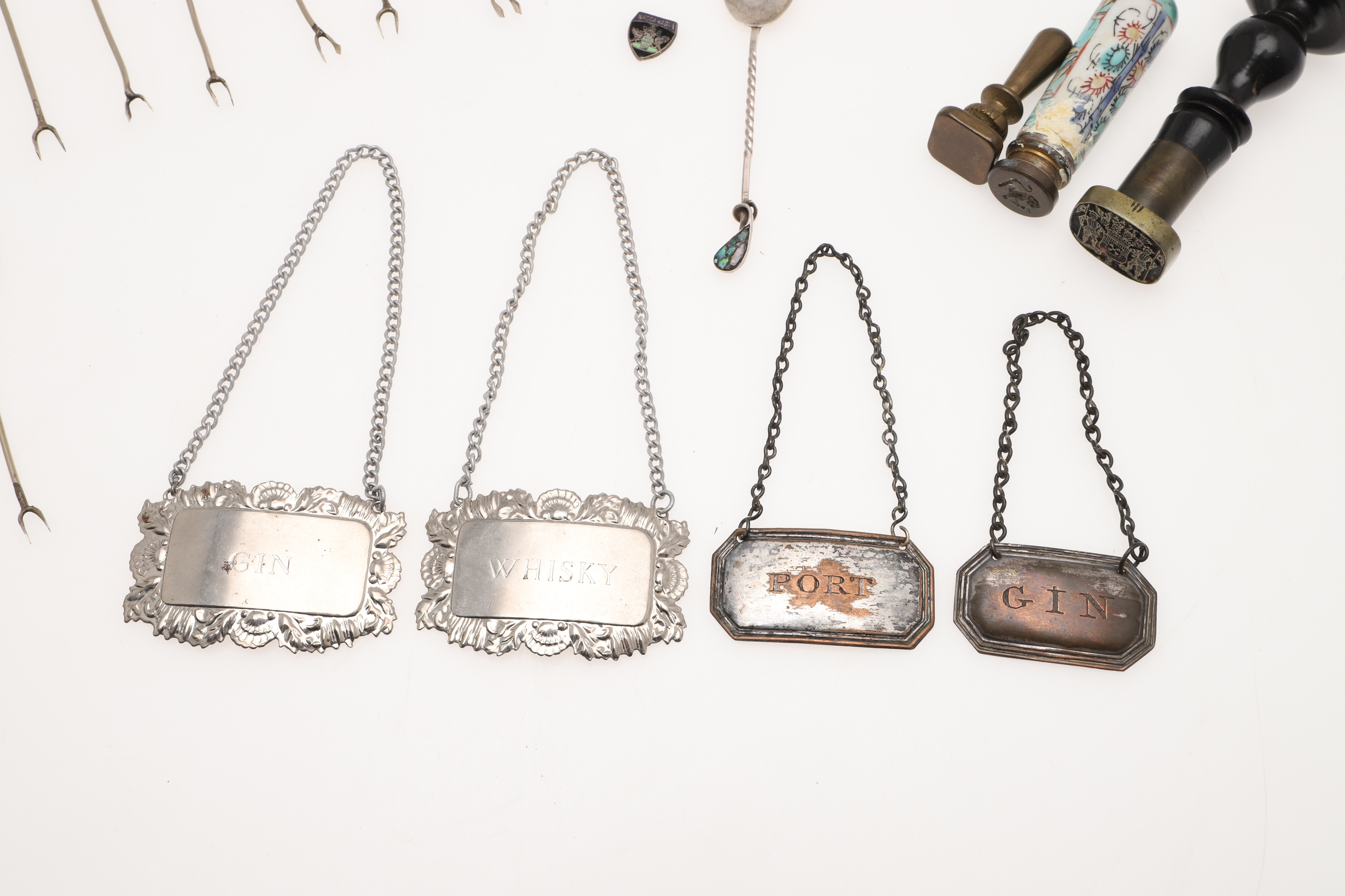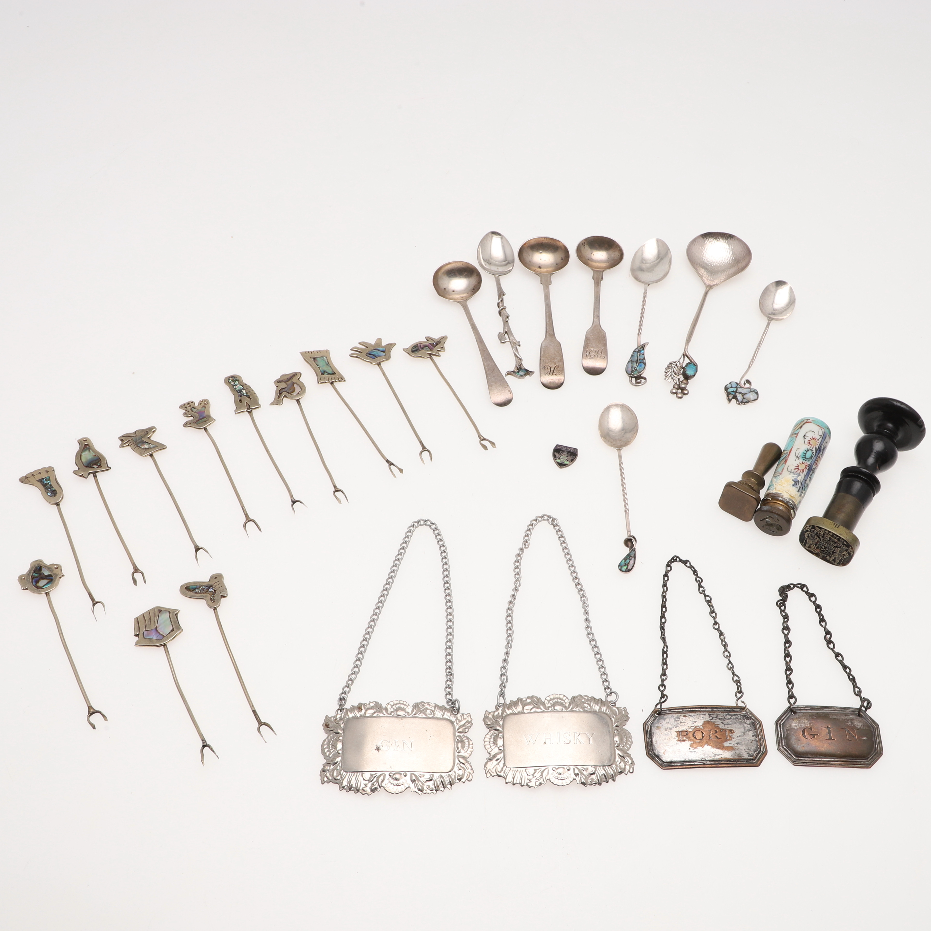 3221925. ANTIKE SIEGEL, SILBERLÖFFEL UND WEINETIKETTEN.
