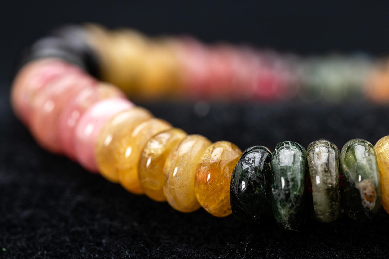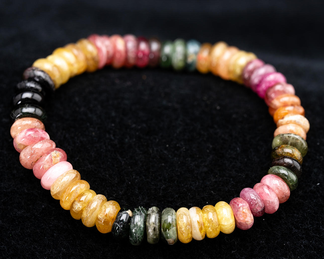 Dehnbares Armband mit Turmalin-Rondellen von Ø ca. 7 mm - 8 mm. Gewicht ca. 85 ct.