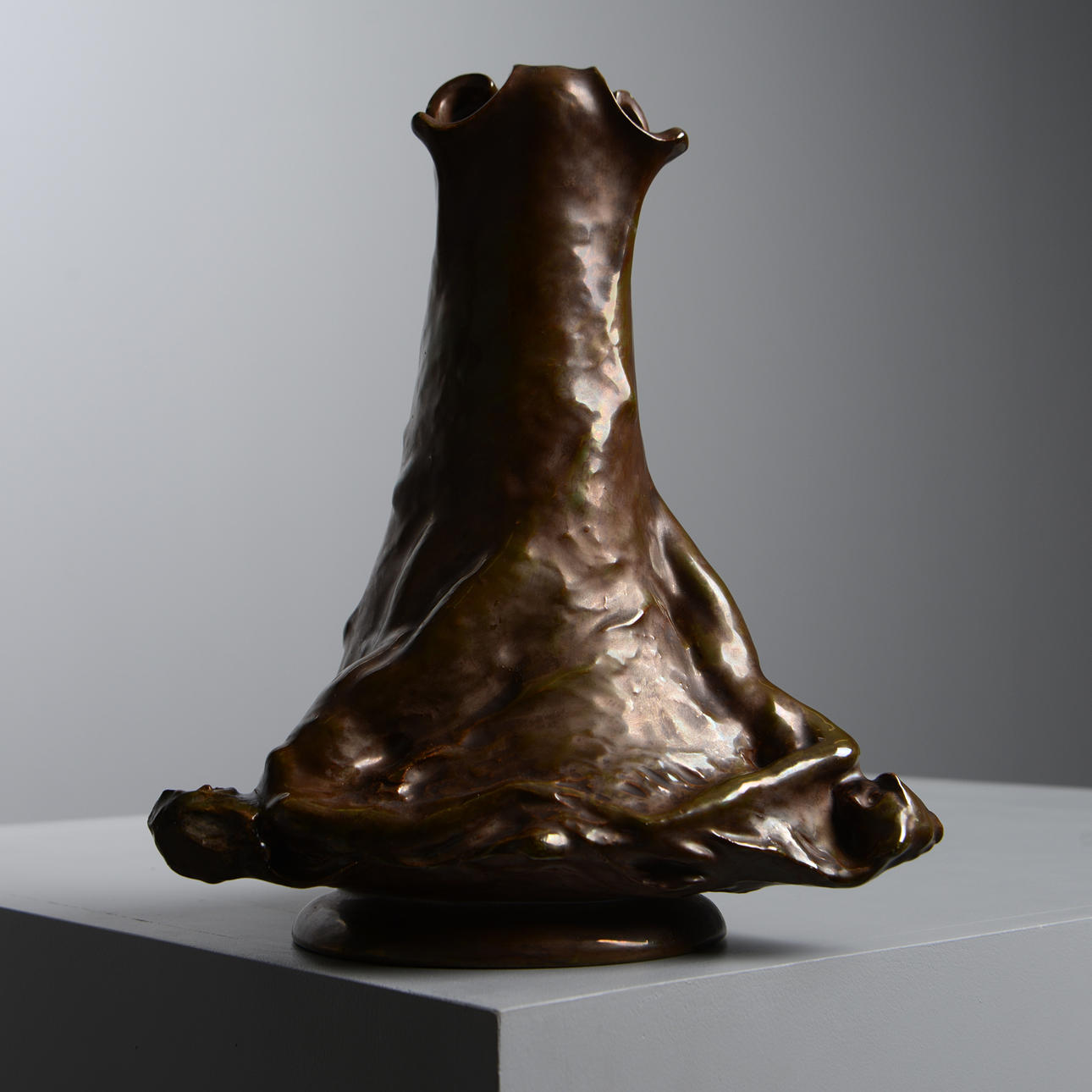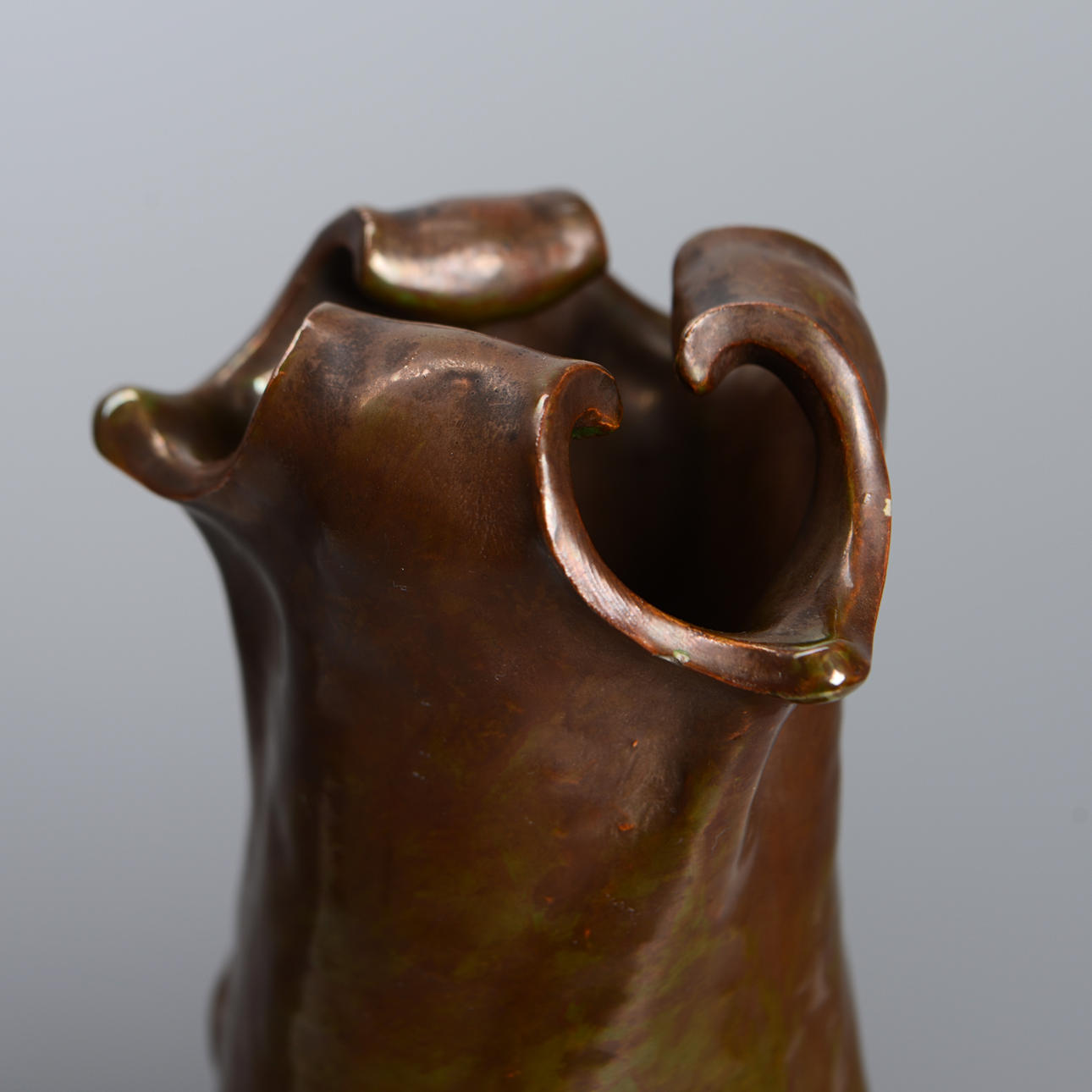 Glänzend glasierte Feuersteinware. Vase mit modelliertem Dekor von drei Wassernymphen. Stempel signiert. Höhe 29,5 cm