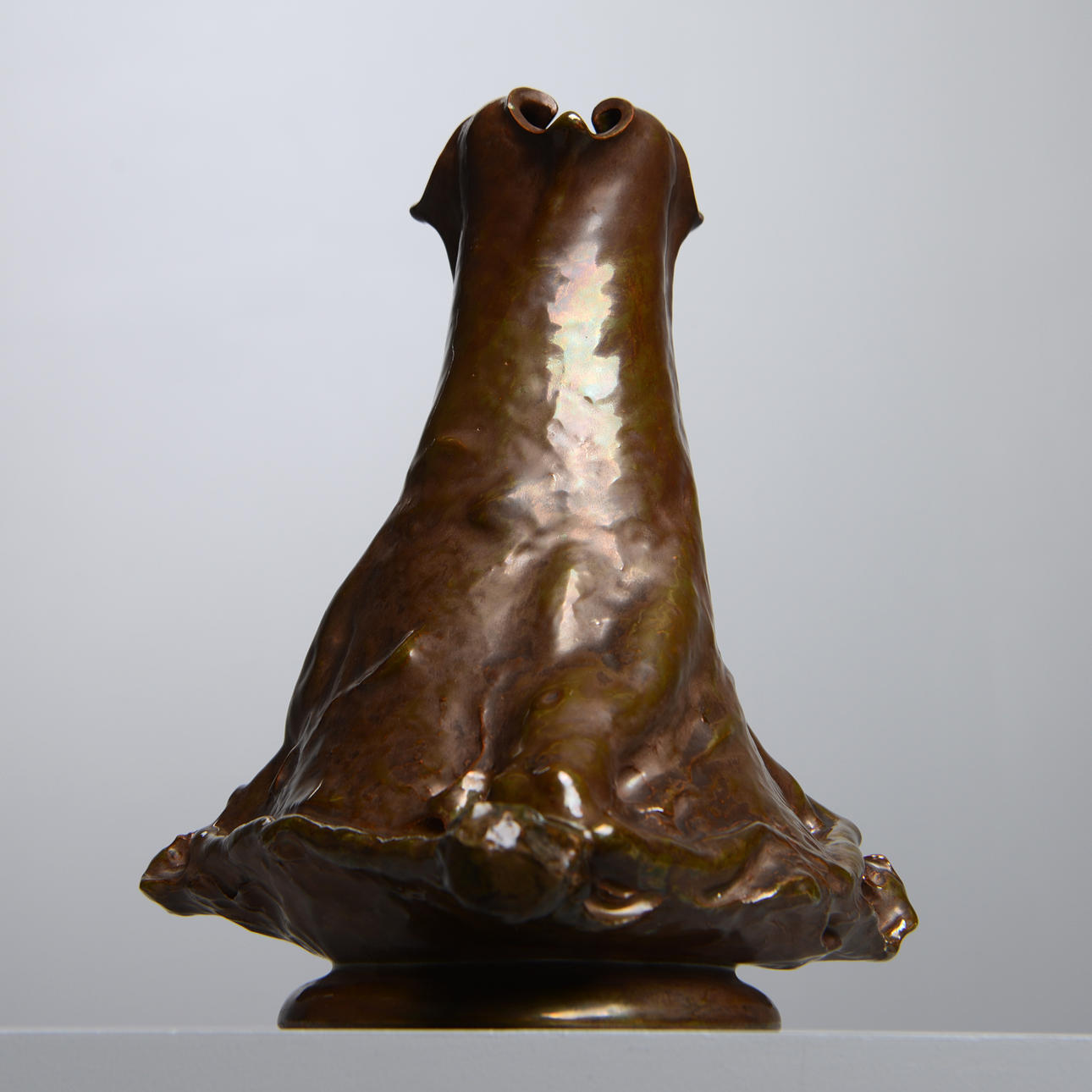 Hermann Neujds zehn Jahre in Gustavsberg 1896-1906 stellen die vielleicht stilistischsten Ausdrucksformen des Jugendstils in Schweden dar. Seine Motive — Blattranken, wellenförmige Haarschleifen, nackte Strandnymphen und Frauengesichter — wurden modelliert und entstanden aus Untertassen, Schalen, Krügen und Vasen. Auf der Pariser Weltausstellung 1900, als der Jugendstil seinen Höhepunkt erreichte, war Neujd mit mehreren Werken vertreten. Ob dieses Objekt eines von ihnen war, ist unklar, aber das Jahr darunter, 1899, regt die Fantasie an. /MP