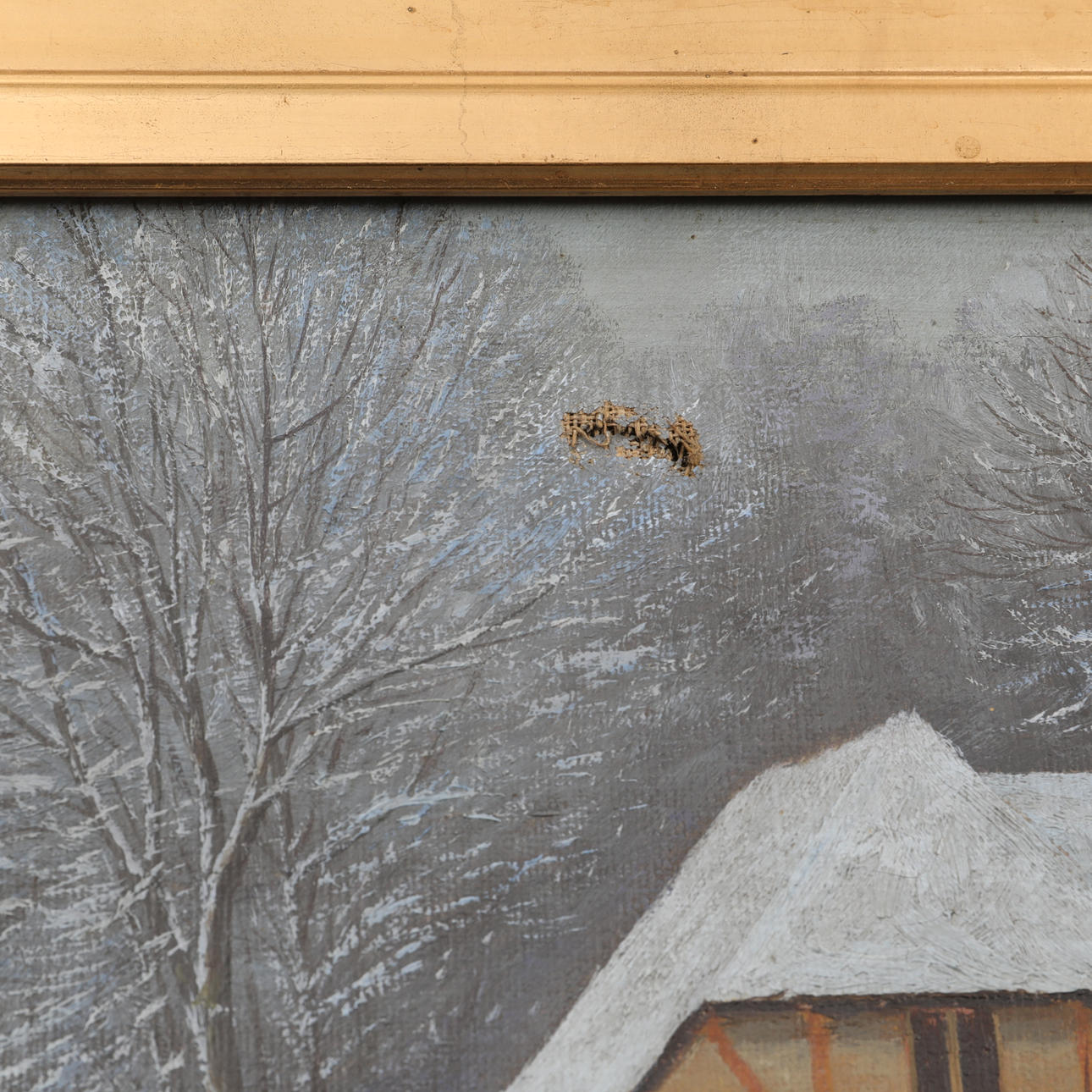 Nicht untersucht außerhalb des Rahmens, Beschädigung der Leinwand und des Schmutzes.