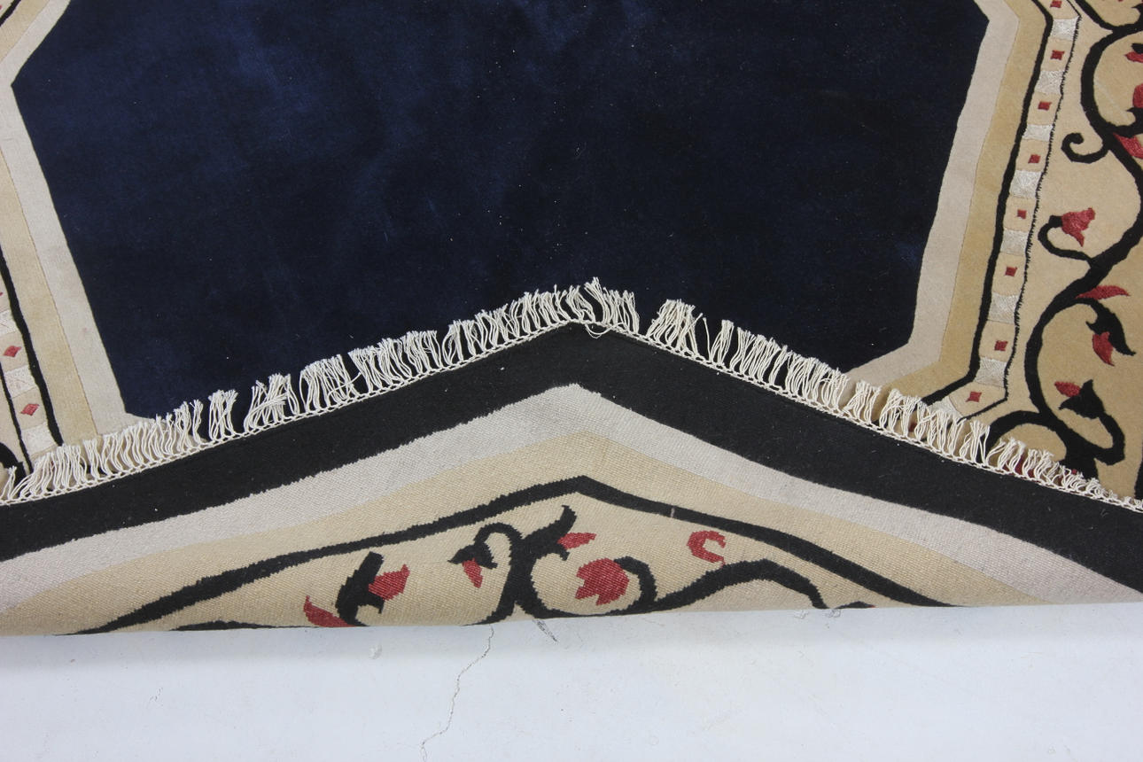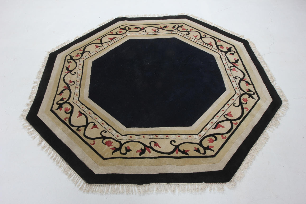 Handgeknüpfter Teppich aus Wolle auf Baumwollkette. Achteckiger Teppich, Hauptbordüre mit Blumengirlande.