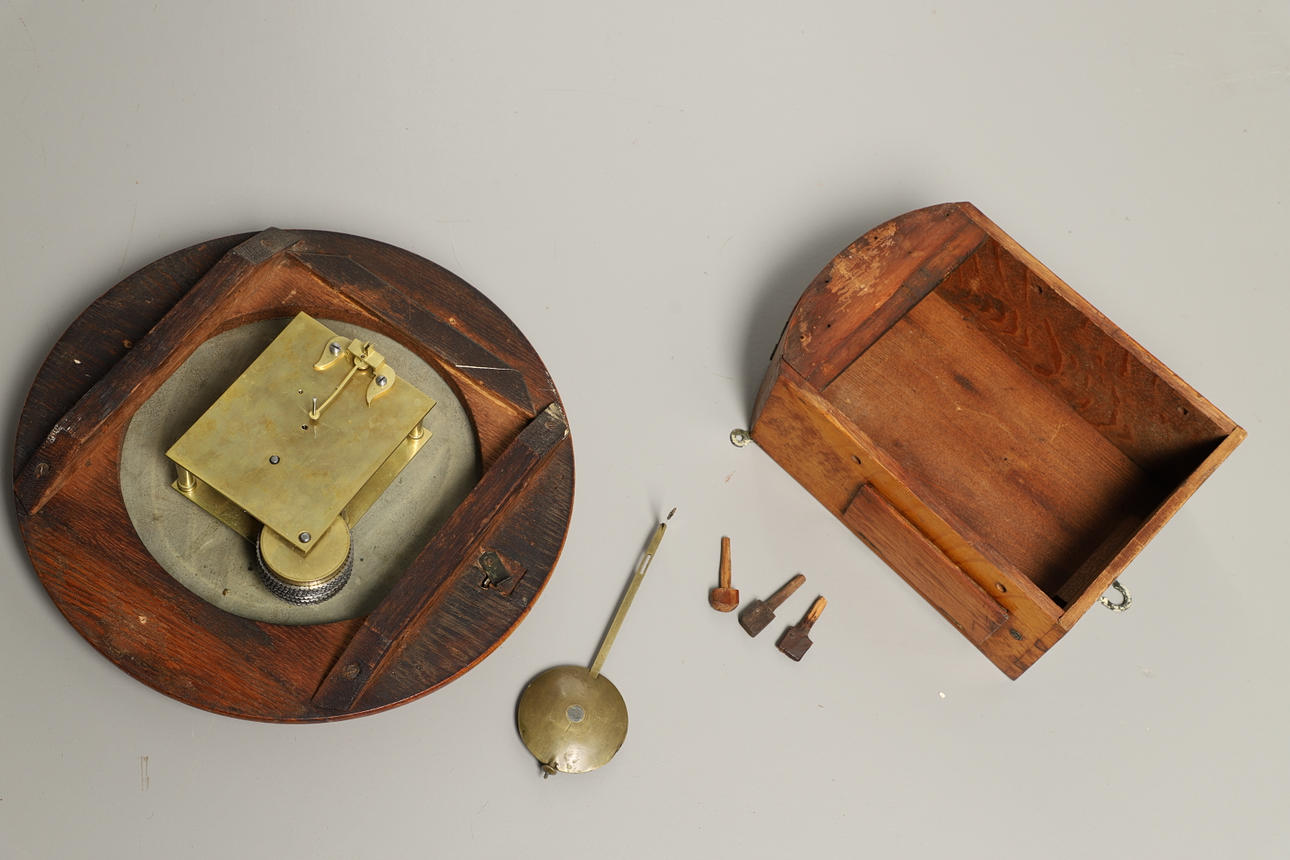 3233855. ANTIKE BAHNHOFSUHR AUS EICHENHOLZ.