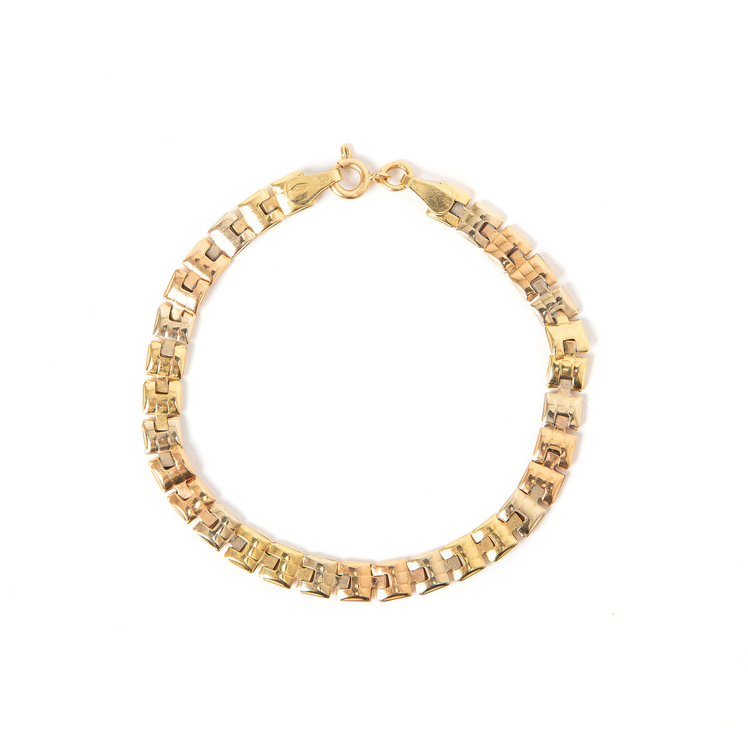 3234074. ARMBAND, 18 K dreifarbiges Gold.