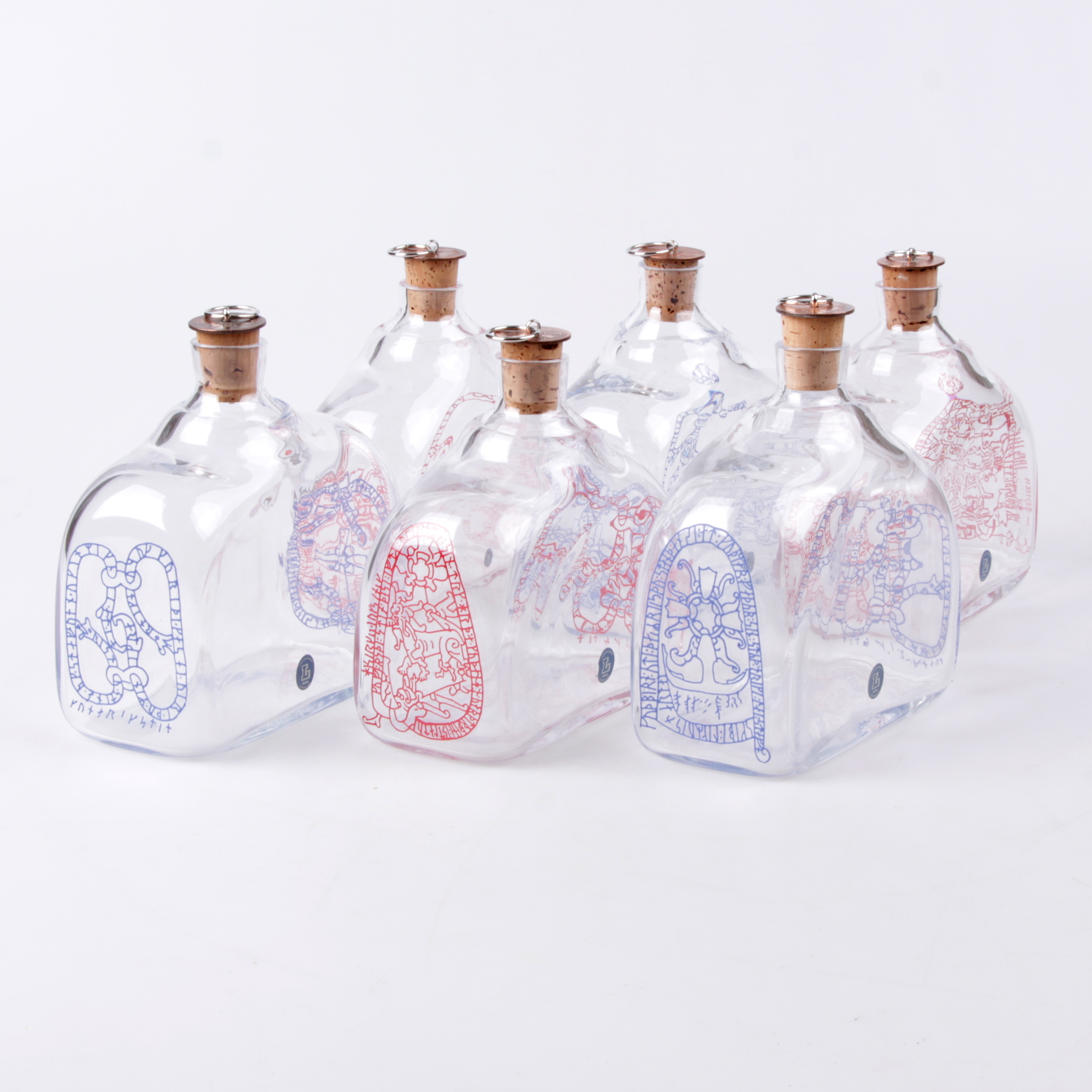 323635. BRÄNNVINSKARAFER, 6-tlg. Lindshammar, 1900.