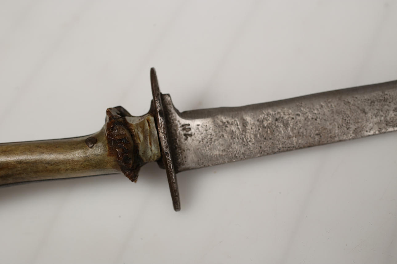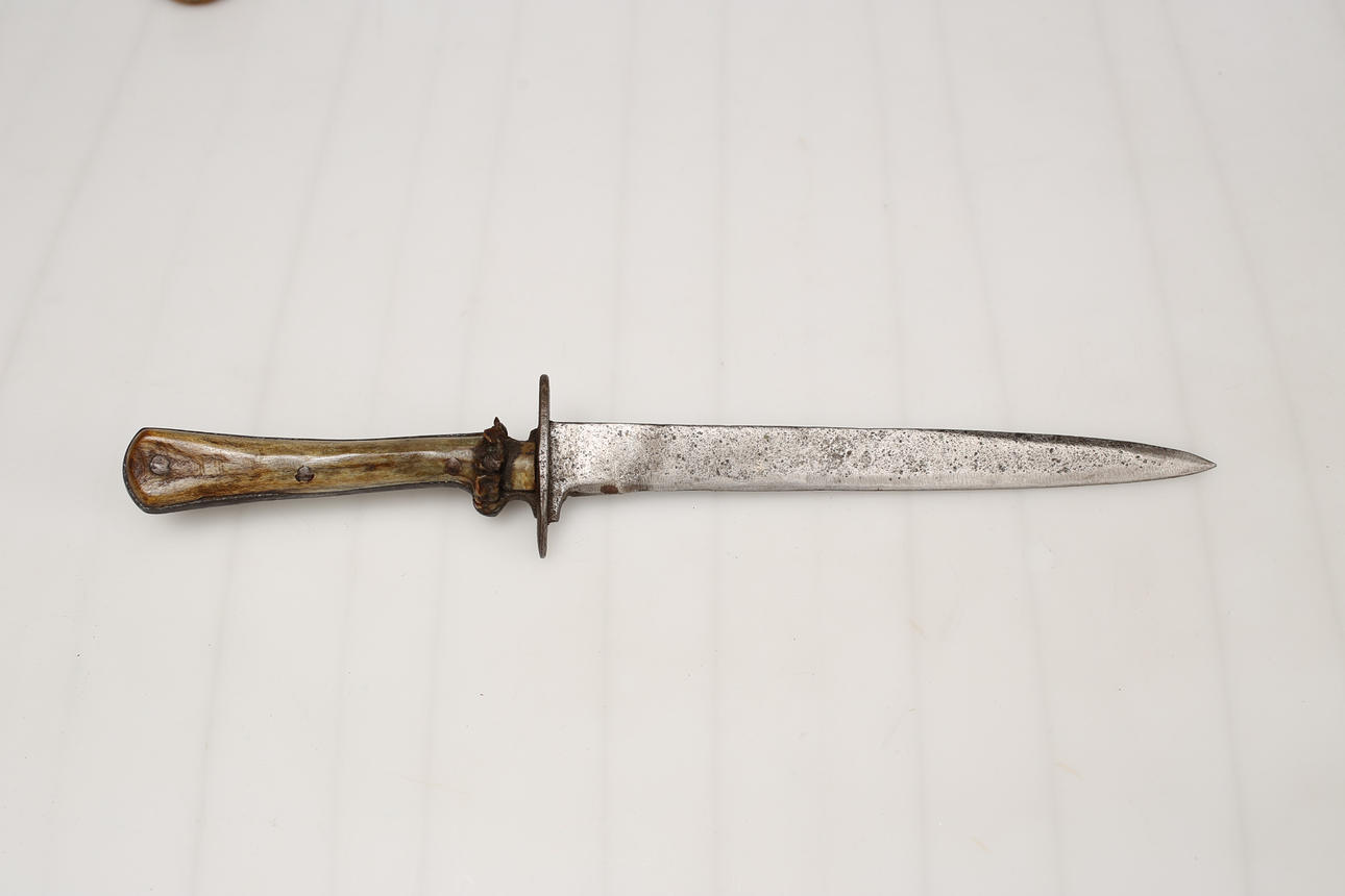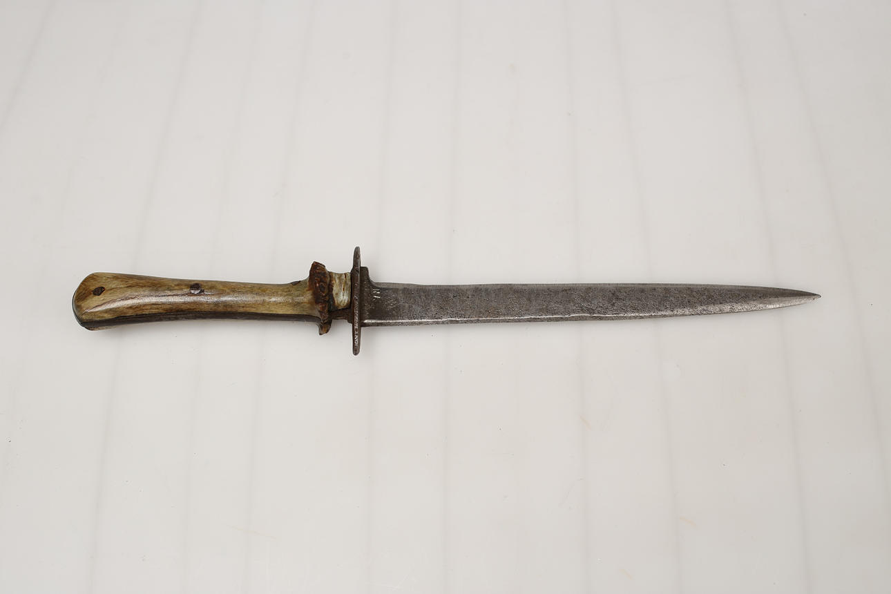 -Dolch aus dem Balkan mit Horngriff und Bajonettklinge, 31 cm lang, ohne Scheide. 1915—1930.