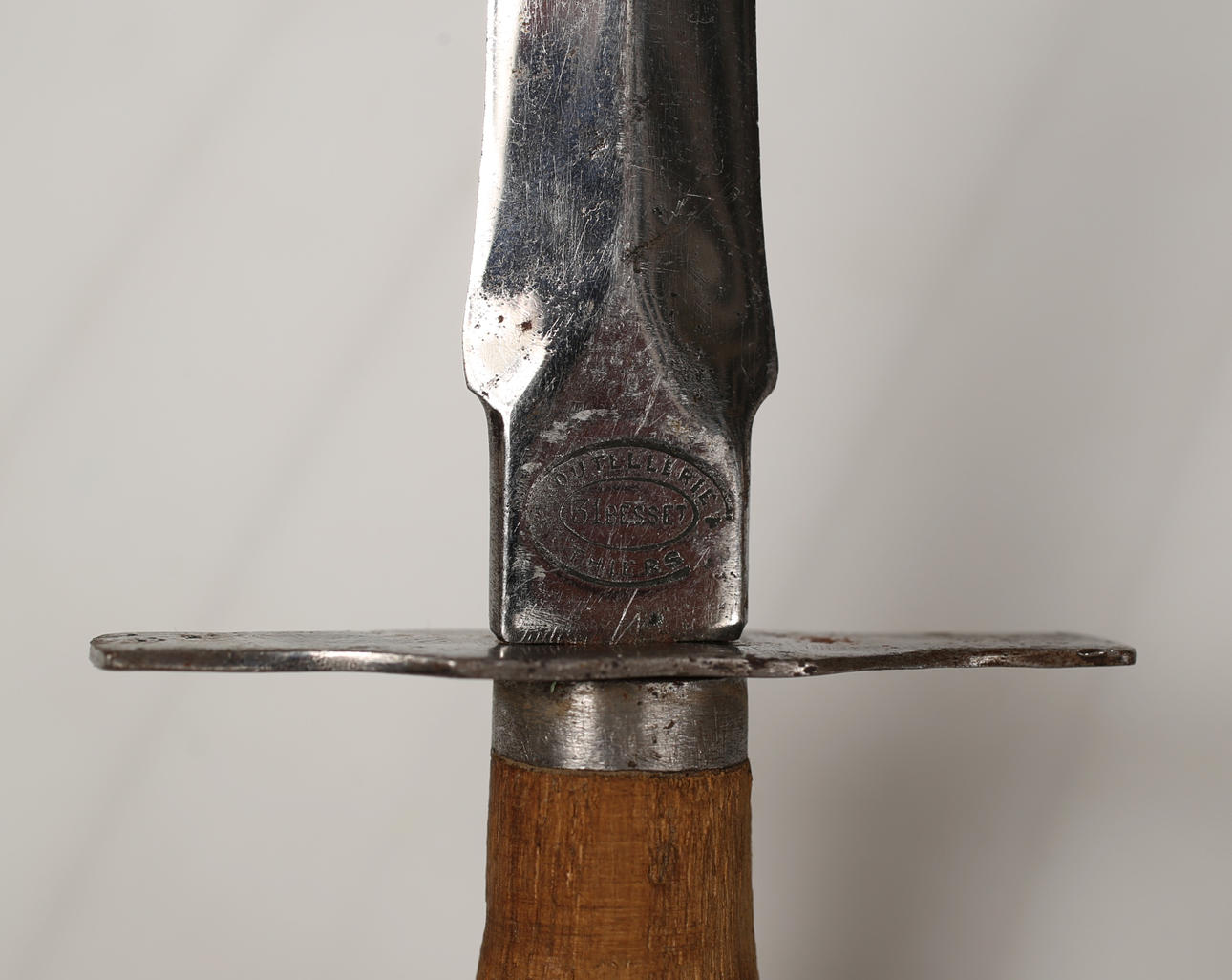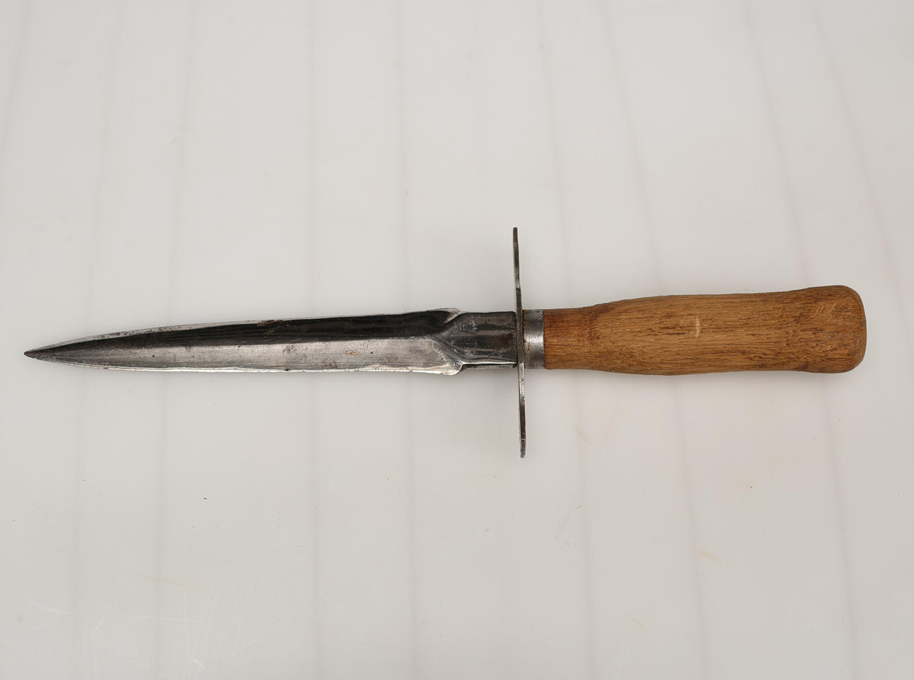 -Französisches Kampfmesser“ Le Venguere de 1870“ Modell 1916. Hersteller „Coutellerie Thiers /31 Besset“, dies ist die seltenere Version mit dem Ring zwischen Holzgriff und Handschutz. Ich habe die Scheide verpasst. 27 cm lang.