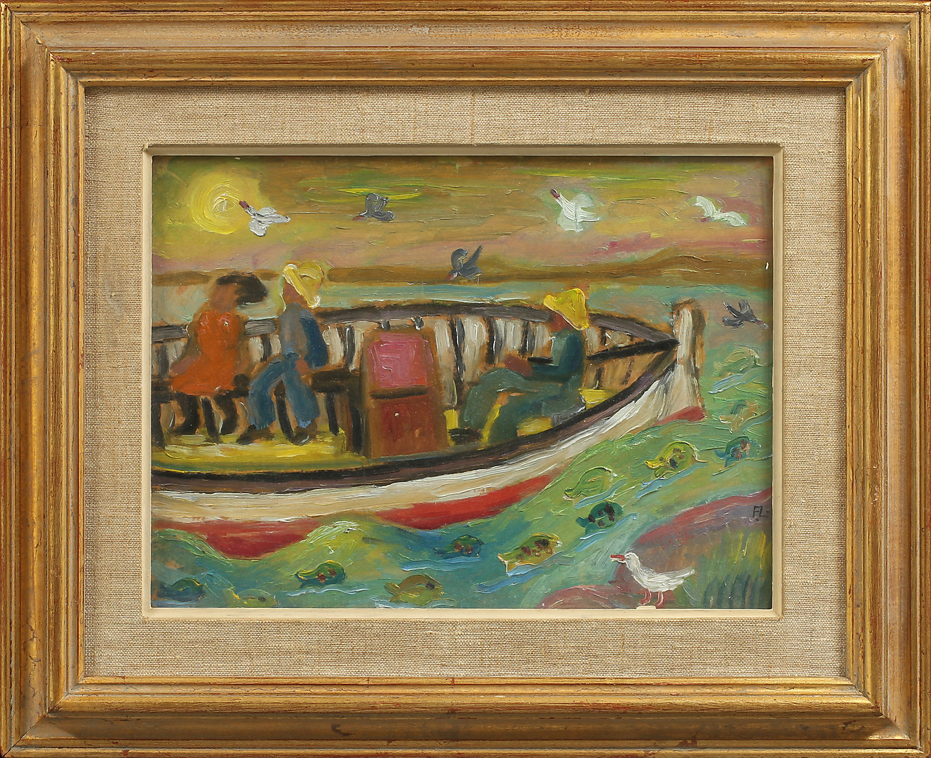 323834. FRANS LARSSON. " Platte", Öl auf Holz, signiert.