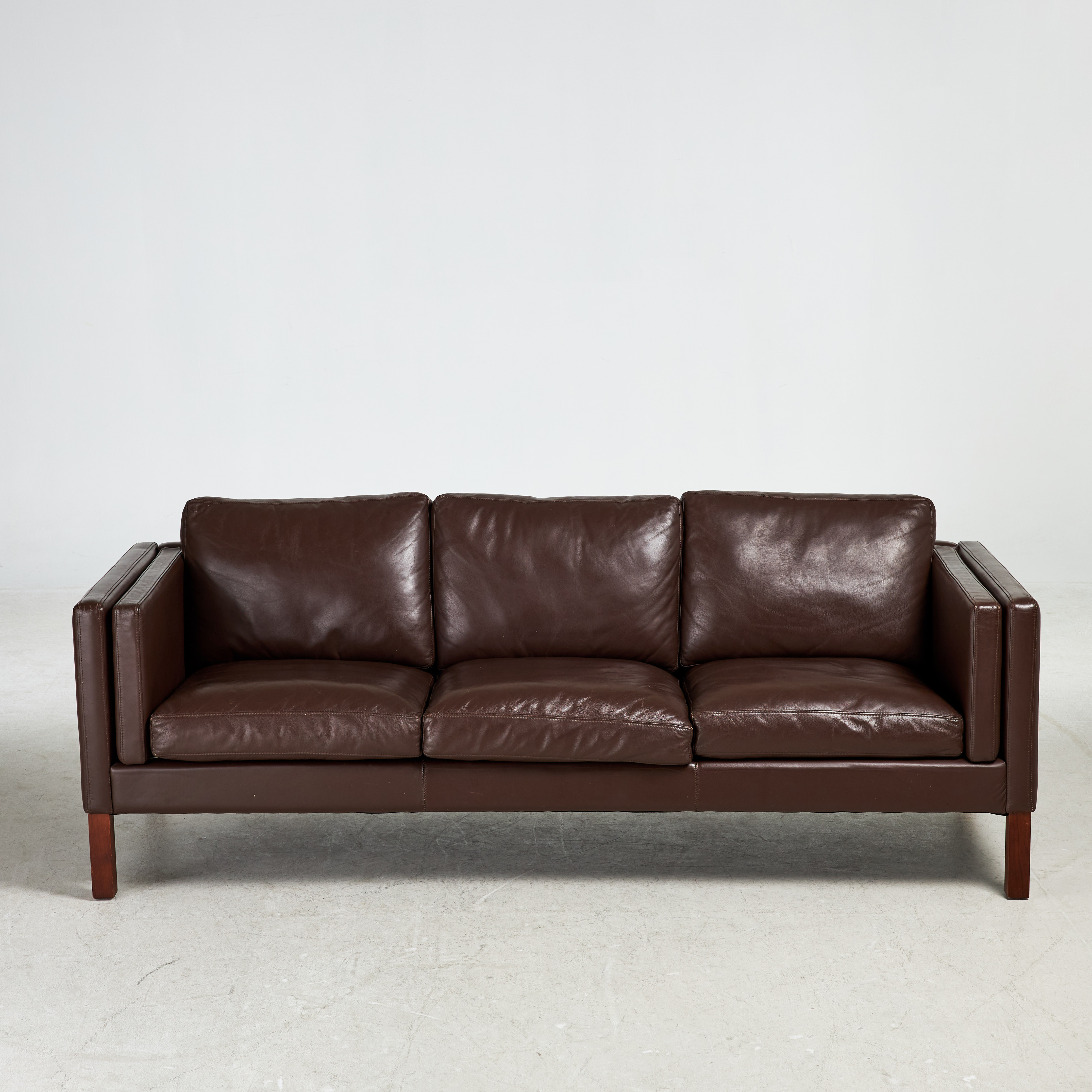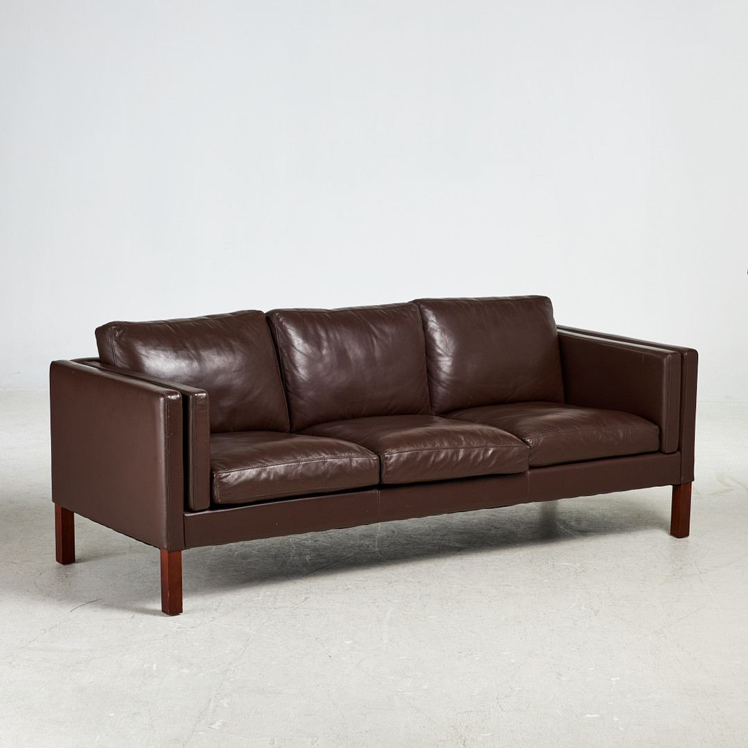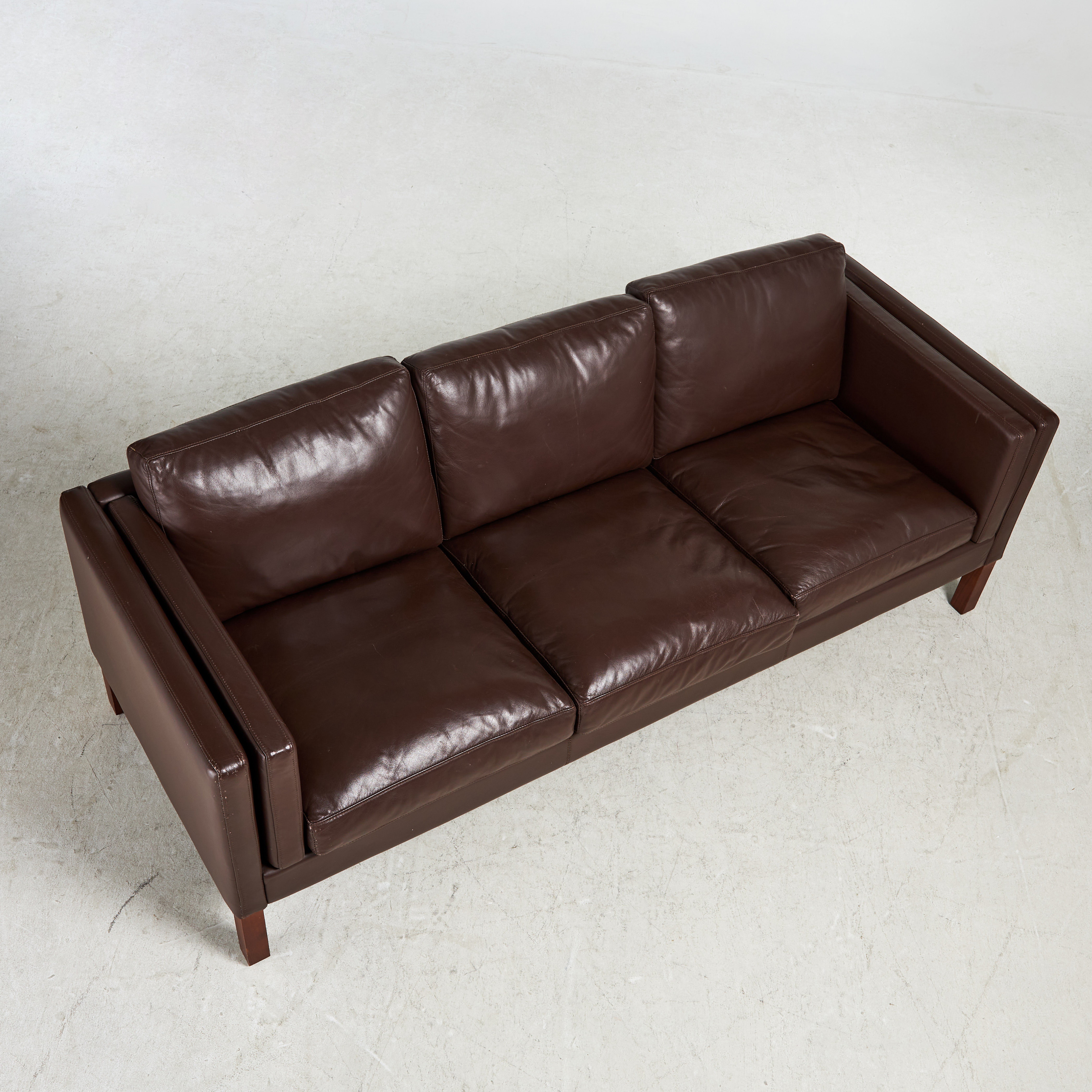 3239552. SOFA, braunes Leder, lose Sitzpolster.