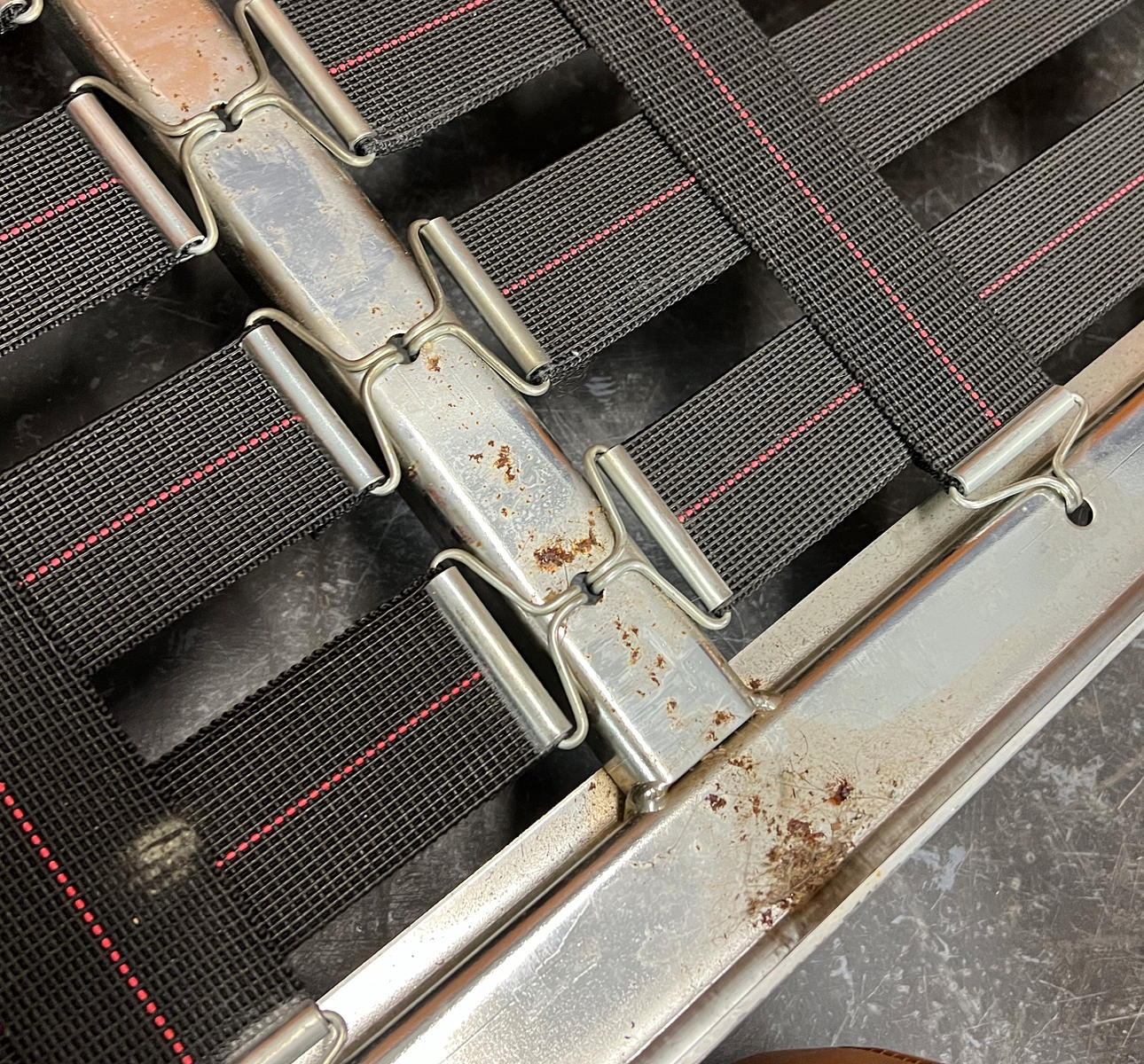 Metallgestell zum Teil angelaufen.