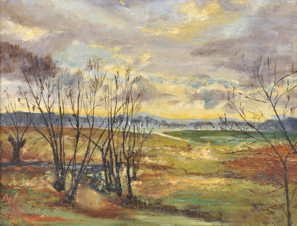 324125. LANDSCHAFTSIMPRESSION. Moorlandschaft mit Ortschaft am Horizont.