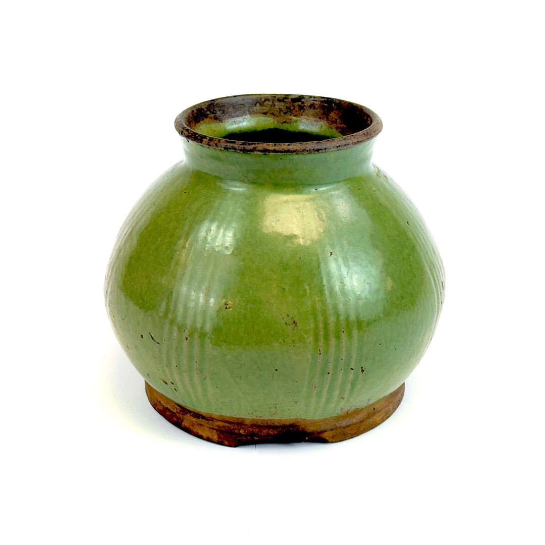 3249484. GROSSER GRÜN GLASIERTER TONTOPF.