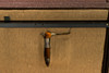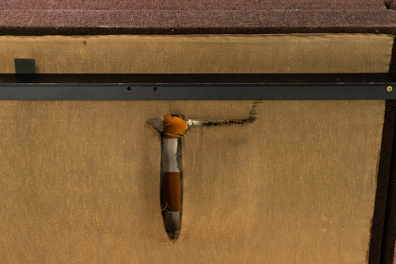 Gebrauchsspuren, stellenweise Abrieb. Die Verschraubung teilweise erneut. Loch im Unterstoff.
