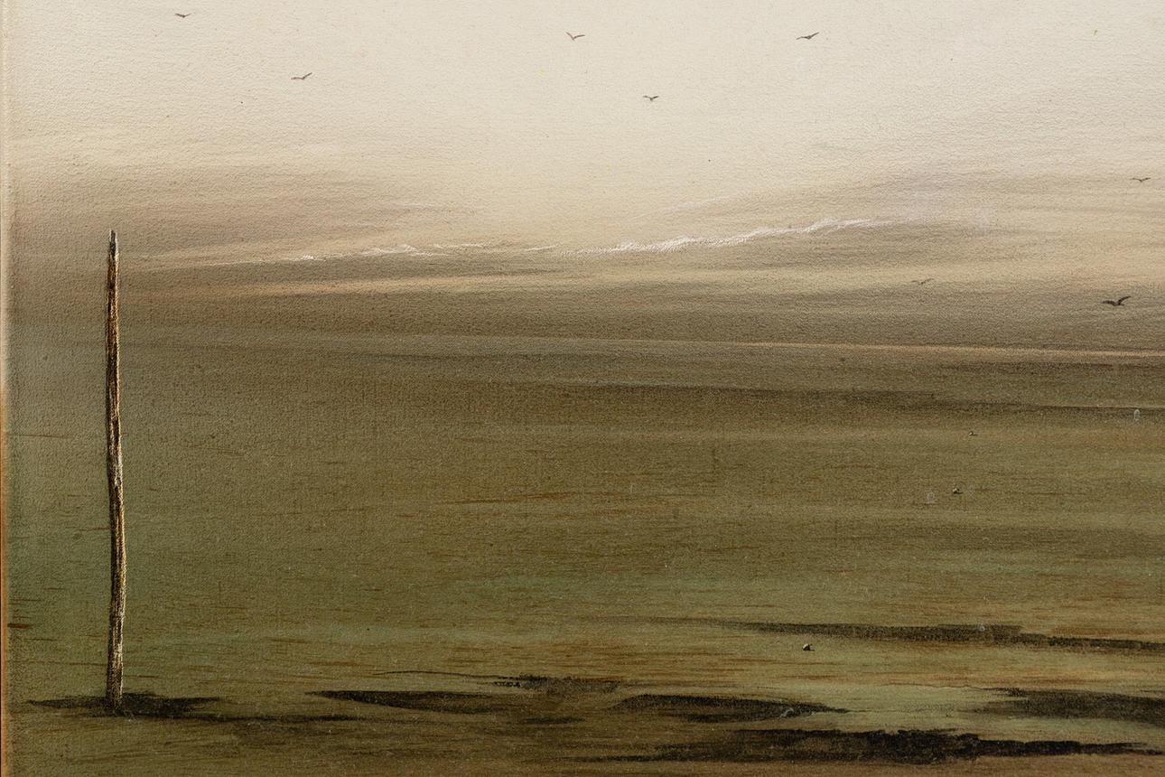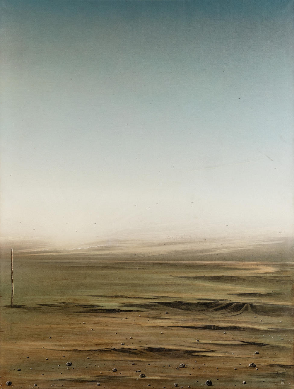Jochen Schimmelpenning (geb. 1948), Die Senke, Öl auf Leinwand, 1978, rechts unten signiert und datiert, zusätzlich rückseitig mit Filzschreiber signiert, datiert 'München 1978' sowie betitelt. mit schmaler Rahmenleiste ca. 126 x 96 cm.