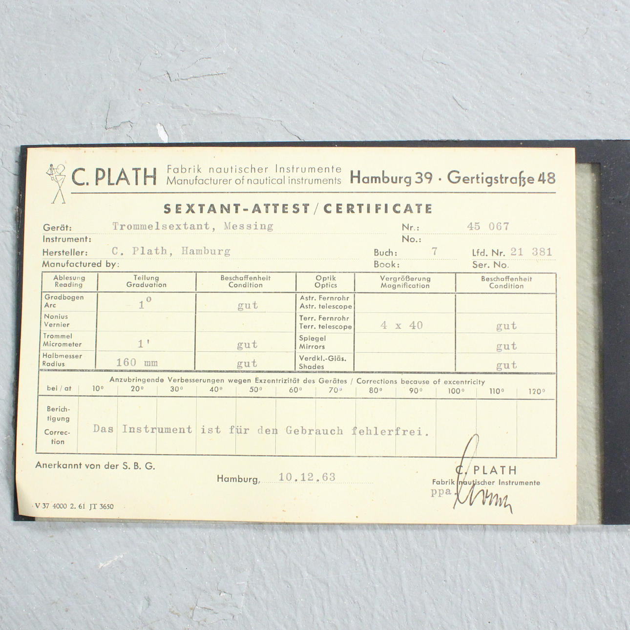 C. Plath, Hamburg, Trommelsextant aus Messing, mit div. Zubehör und Box,