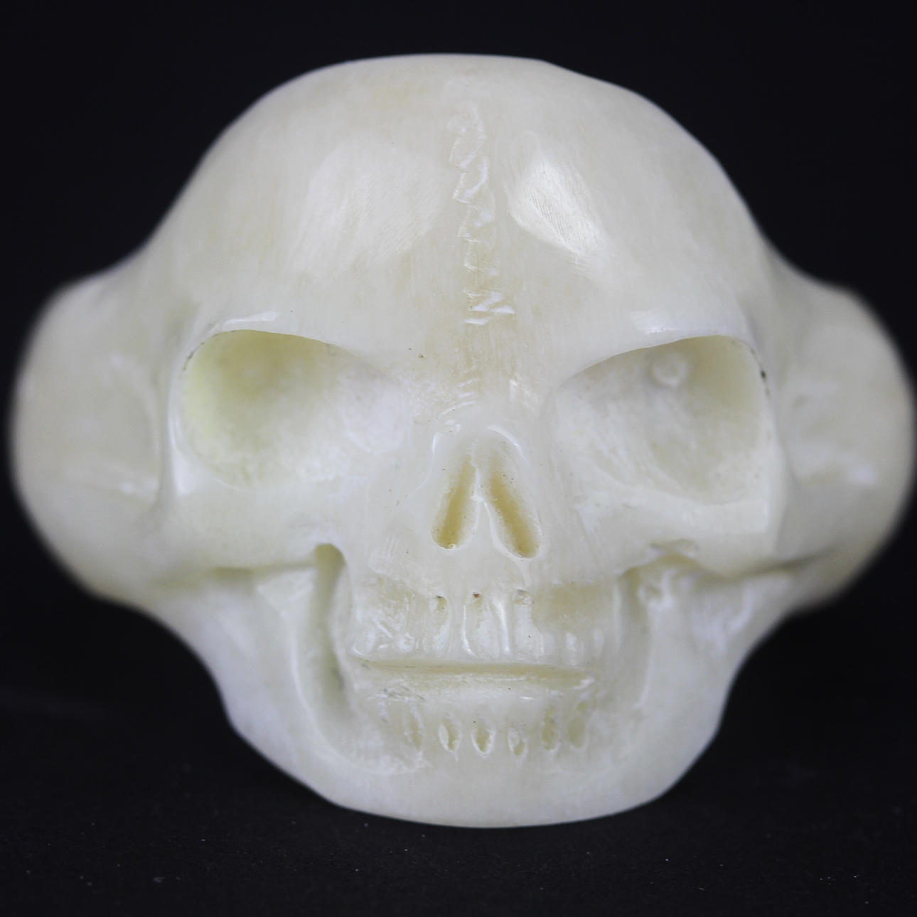 Ein geschnitzter Schädelring aus Knochen.