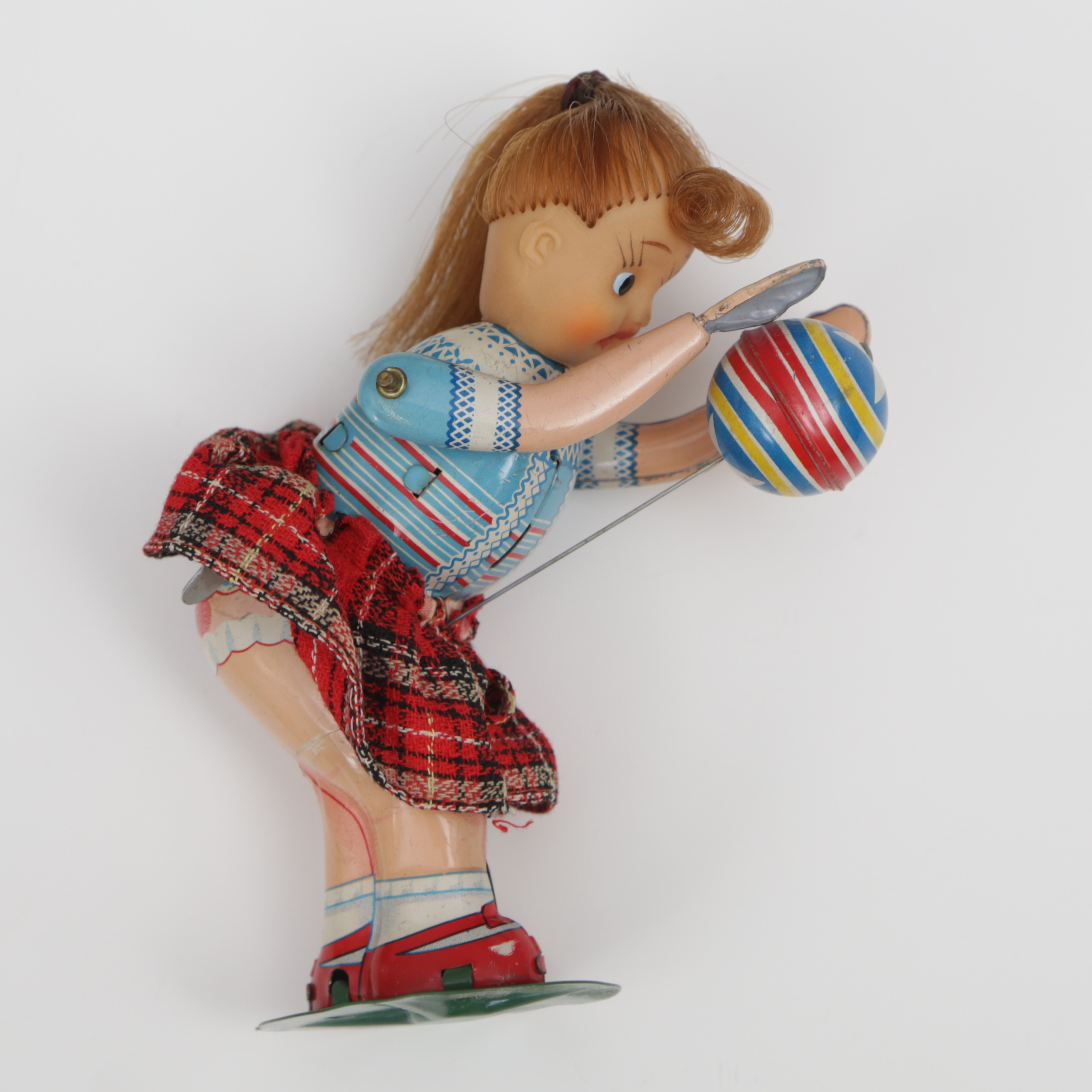 3261047. Spielzeug, mechanisch, ballspielendes Mädchen.