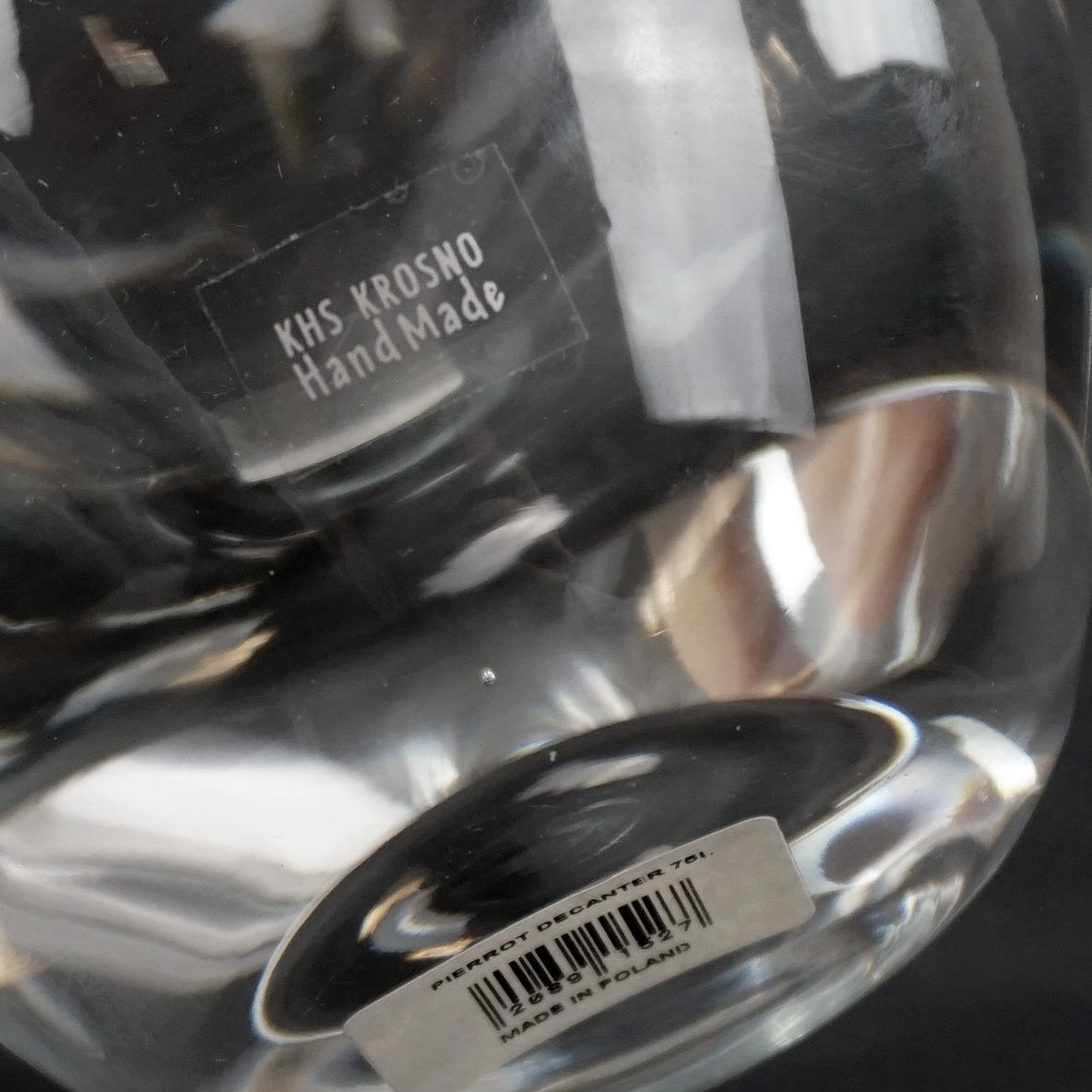 Karaffe „Pierrot“, 0,75 L. Mit der Aufschrift „KHS KROSNO, Handgemacht“