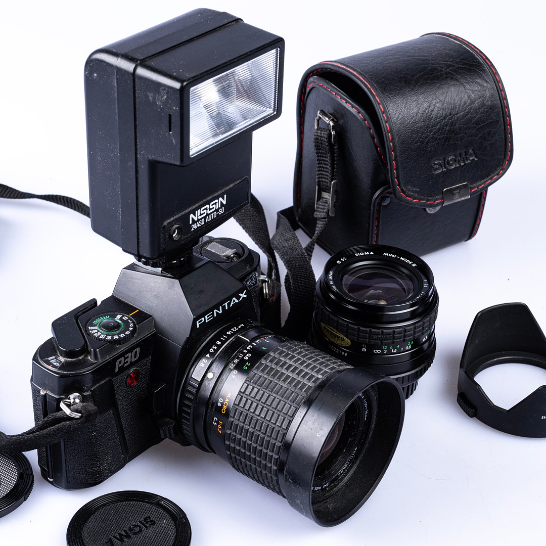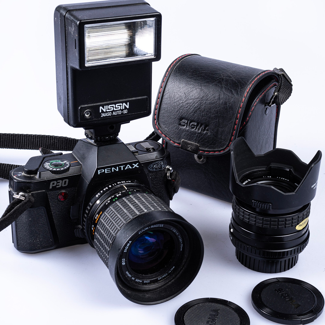 3263138. SYSTEMKAMERA, mit Zubehör, Pentax P30/Sigma.