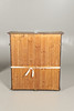Das erste mit zwei verbleiten Lichtpaneelen, die sich öffnen lassen, um verstellbare Regale freizulegen.