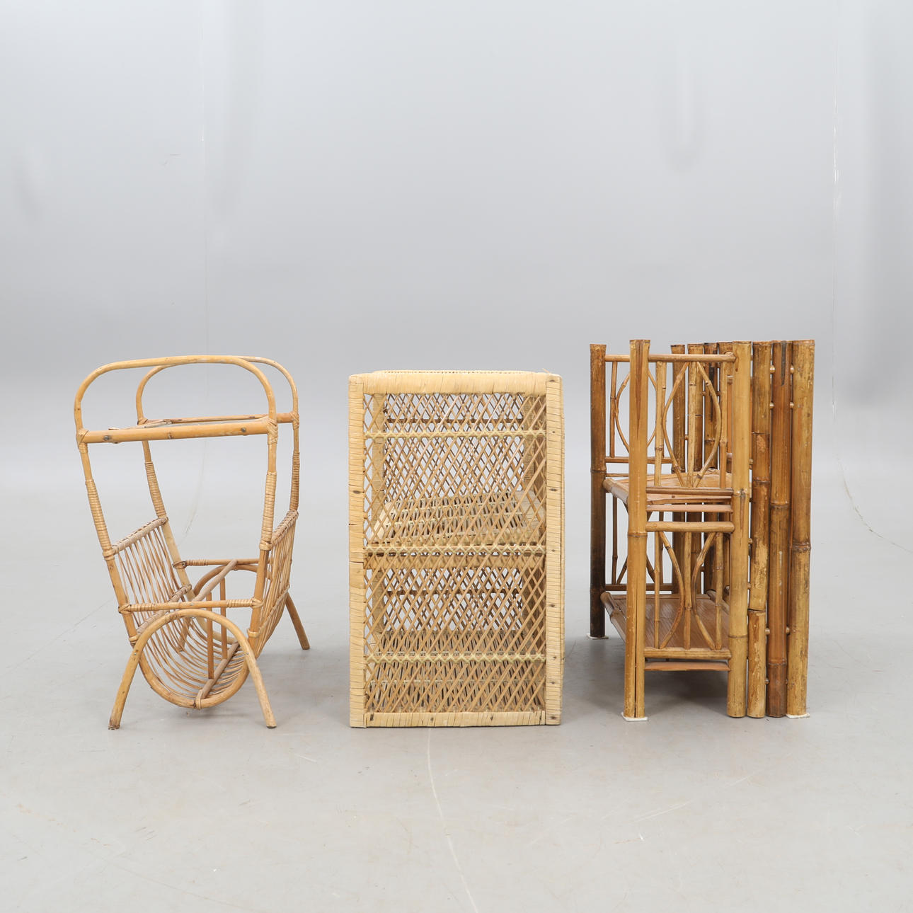 3266529. RATTANMÖBEL, fünfteilig.