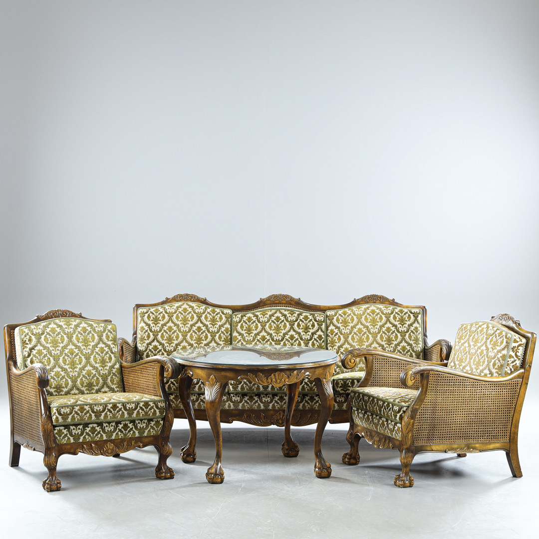 3266536. 4-TEILIGE LOUNGE-GRUPPE IM CHIPPENDALE-STIL.