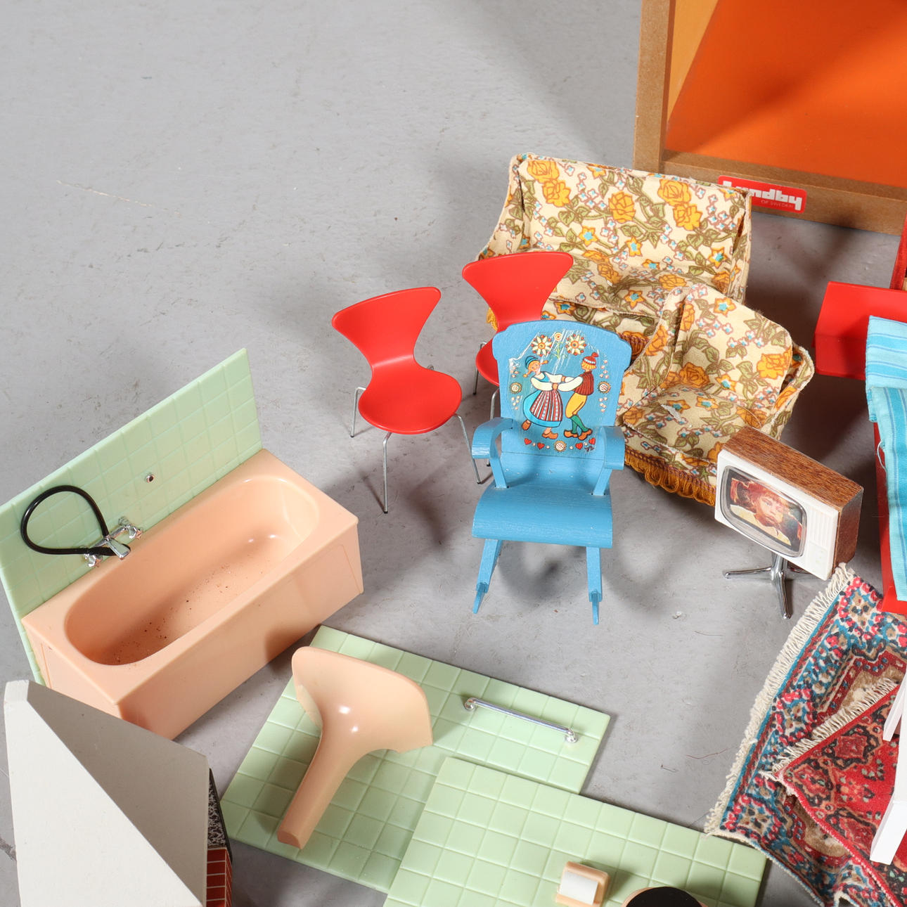 3266848. PUPPENHAUS mit Accessoires, Lundby, 1960/70er.