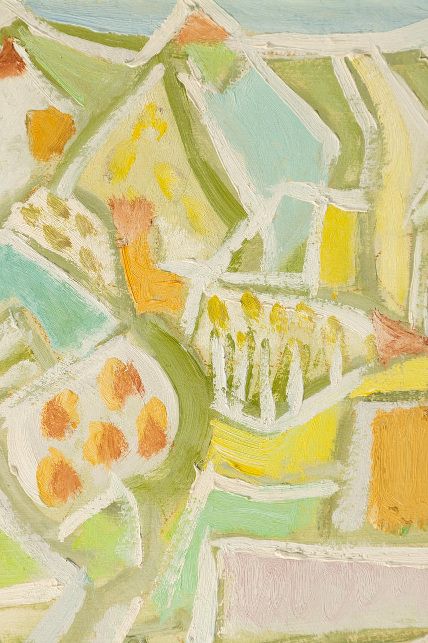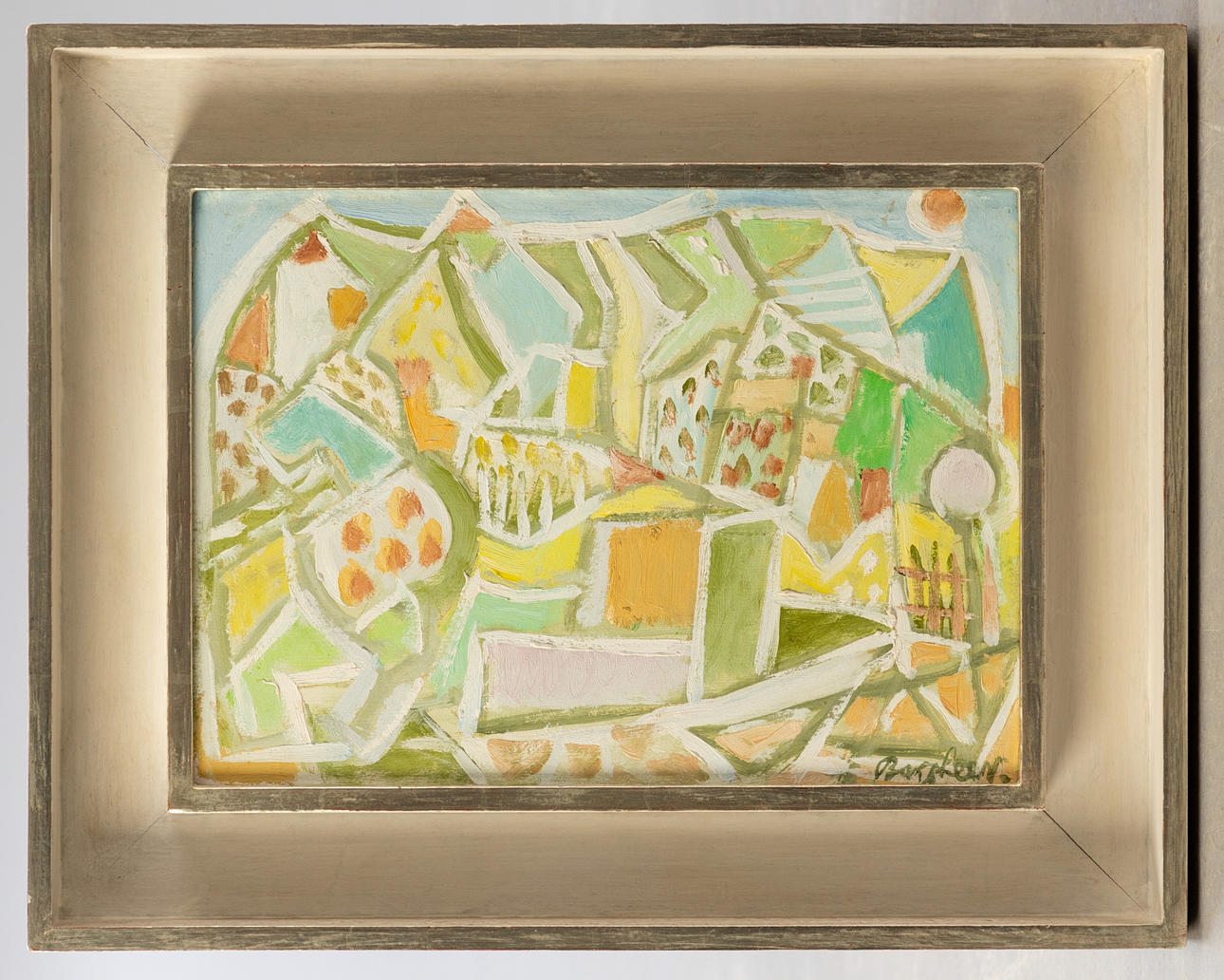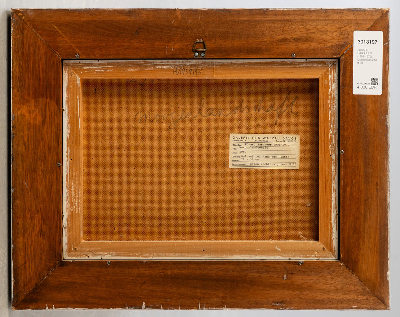 Eduard Bargheer (1901-1979), Morgenlandschaft, Henze 1959/13, Öl auf Platte, 1959, signiert, rückseitig mit Bleistift betitelt sowie mit altem Etikett der Galerie Iris Wazzau, Davos. ca. 28 x 39 cm, mit Rahmen ca. 42 x 53 cm.