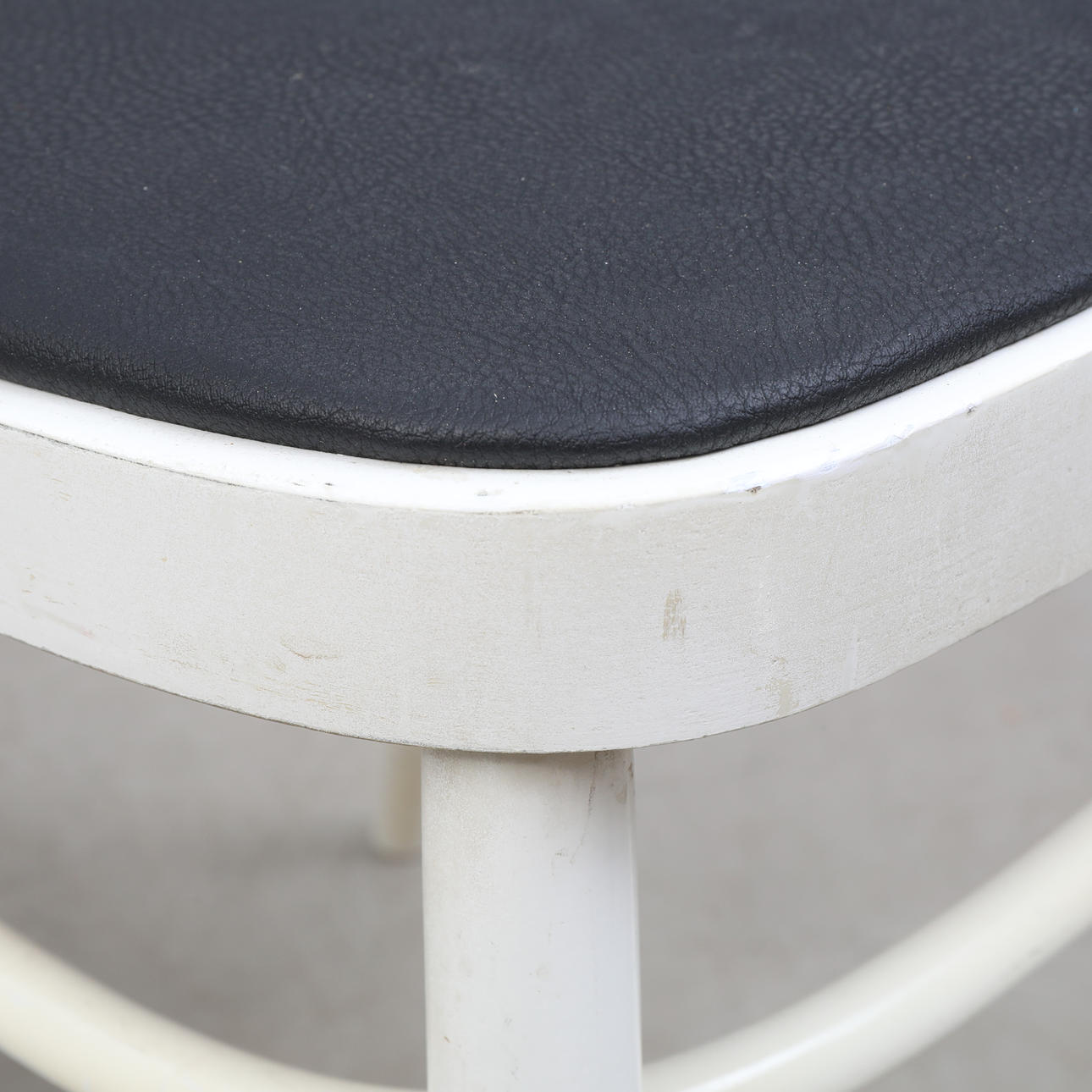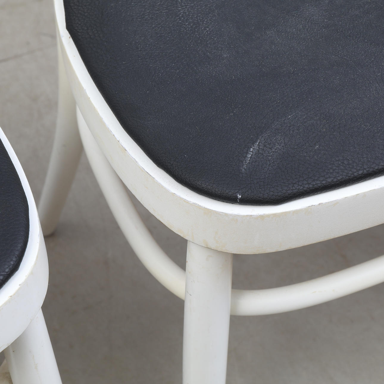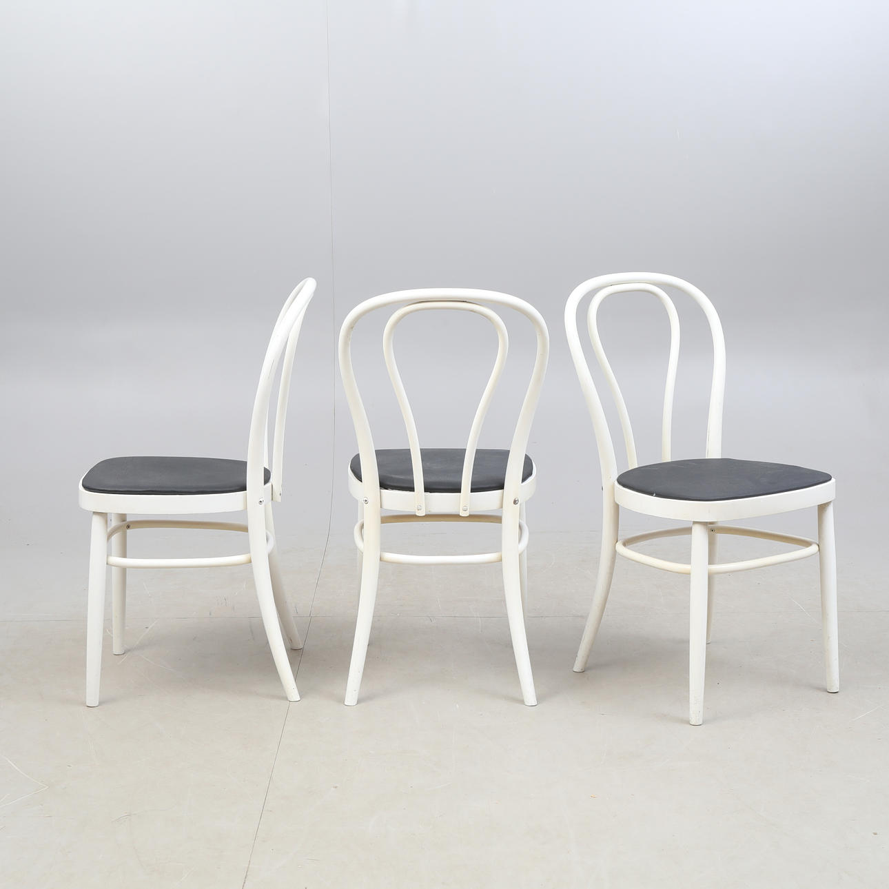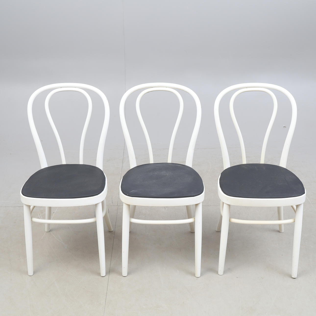3 Caféstühle von TACKE, deren Sitz mit Kunstleder bezogen ist.