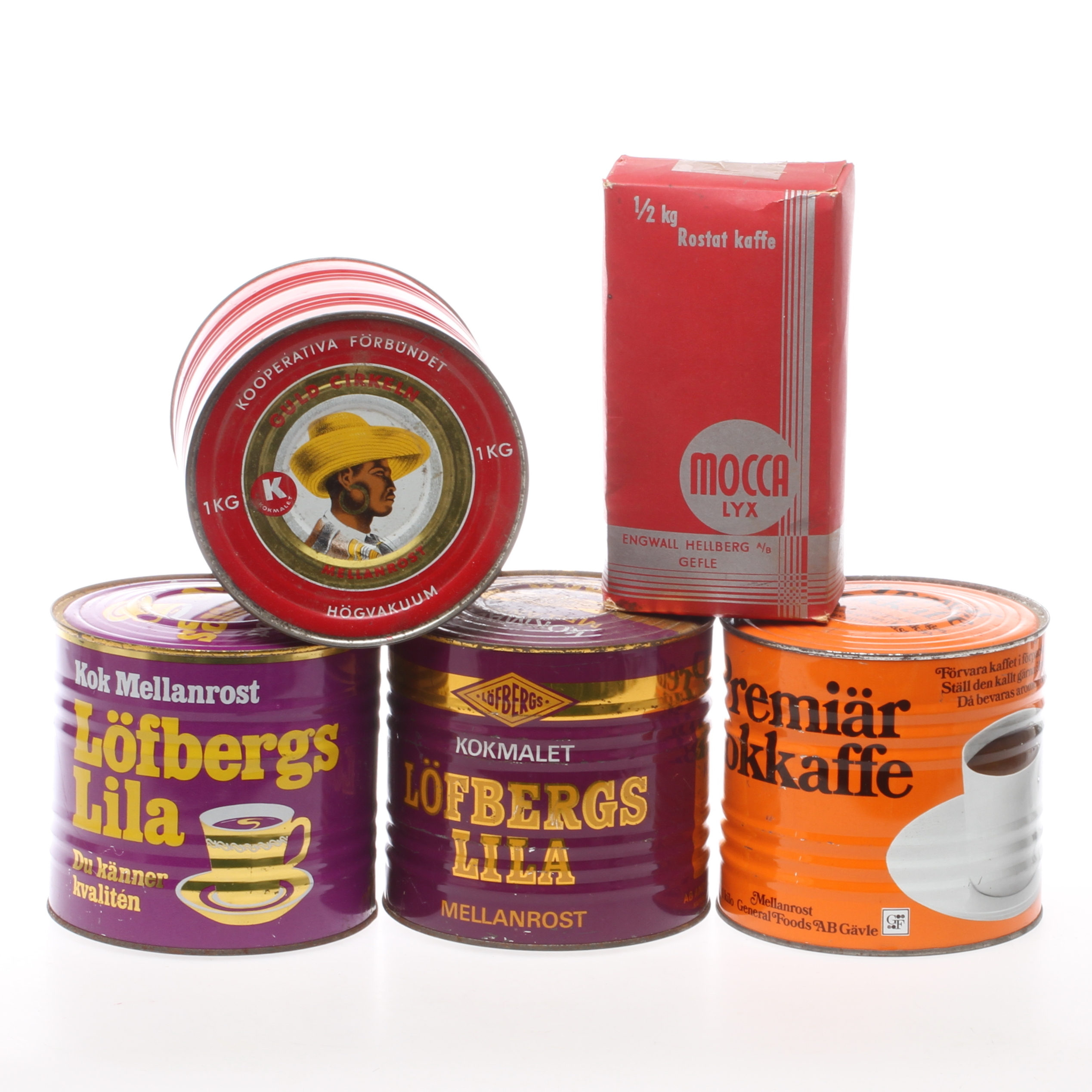 328061. KAFFEE, 5 Packungen/Dosen, 1900er.