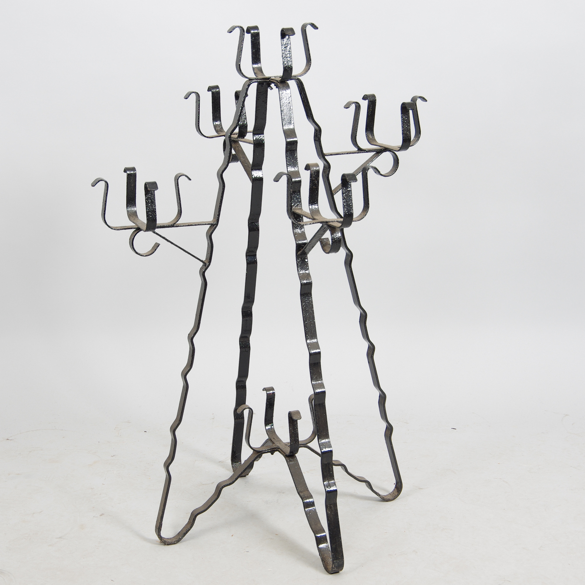 328442. BLUMENARRANGE, schwarz lackiertes Schmiedeeisen.