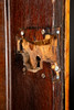 Altersspuren, stellenweise Spannungsrisse, partielle Furnierdefekte, Reparaturen, Kratzspuren, Bestoßungen und Defekte.
