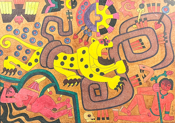 Geschnittenes und bemaltes Holz, Höhe ca. 31 cm.